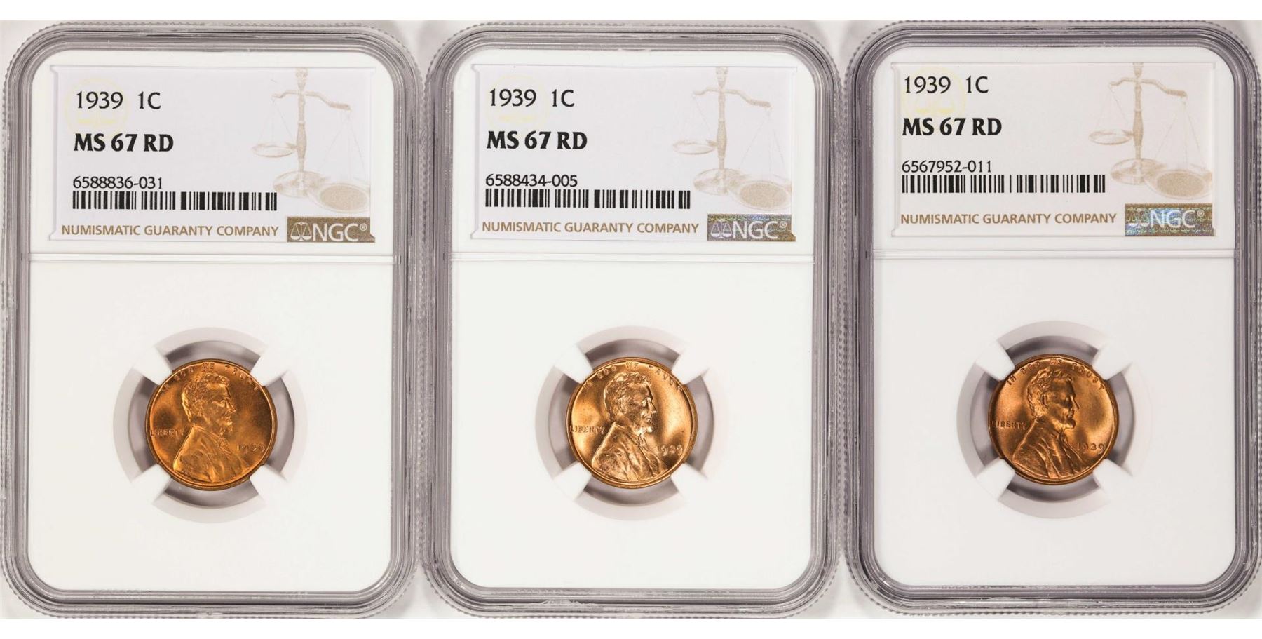One Lot of (3) 1939 Lincoln Wheat Cent Coins NGC MS67RD. NGC Certified.