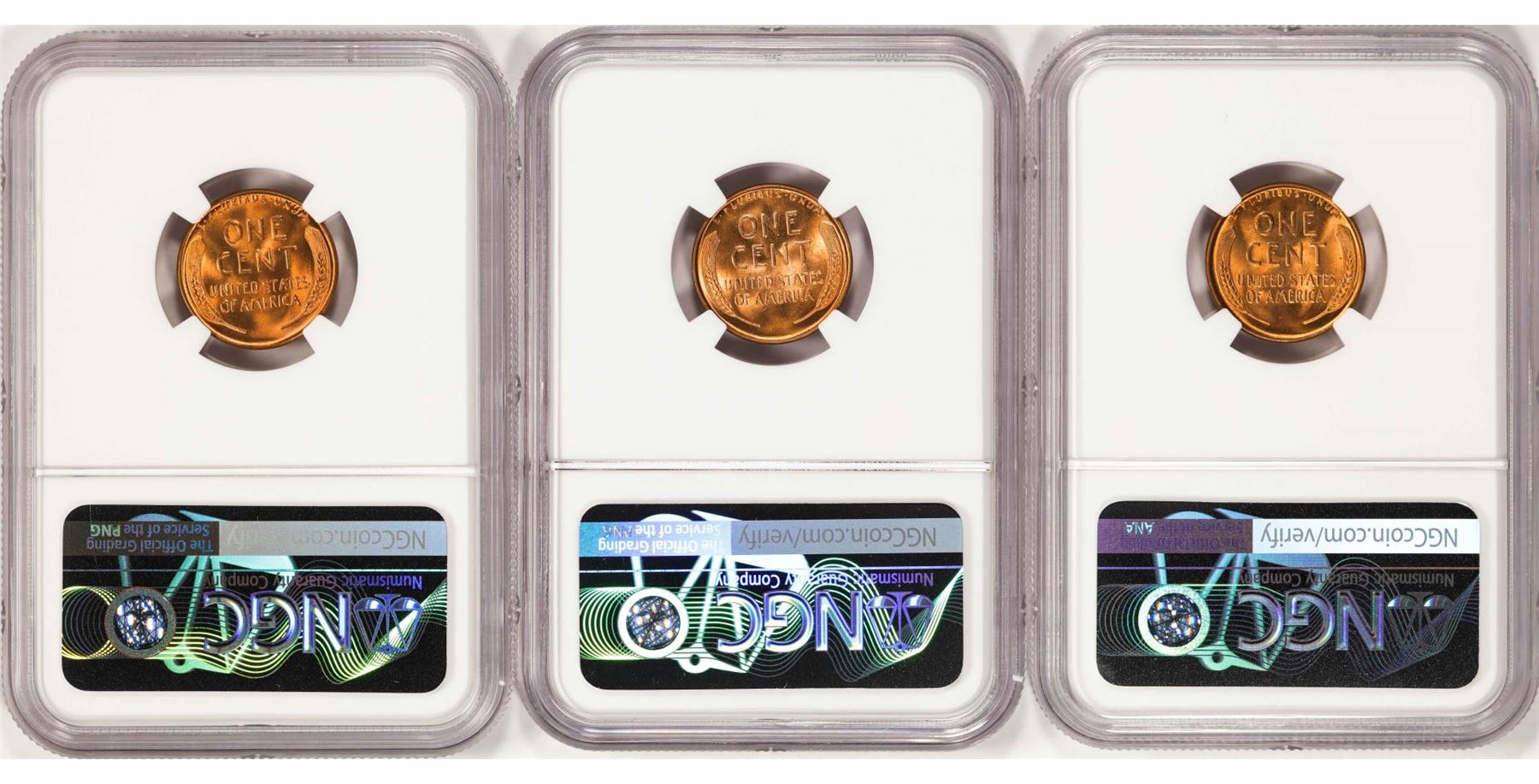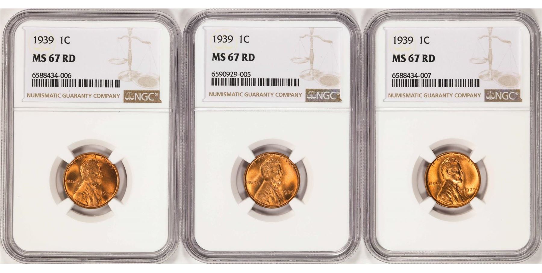 One Lot of (3) 1939 Lincoln Wheat Cent Coins NGC MS67RD. NGC Certified.