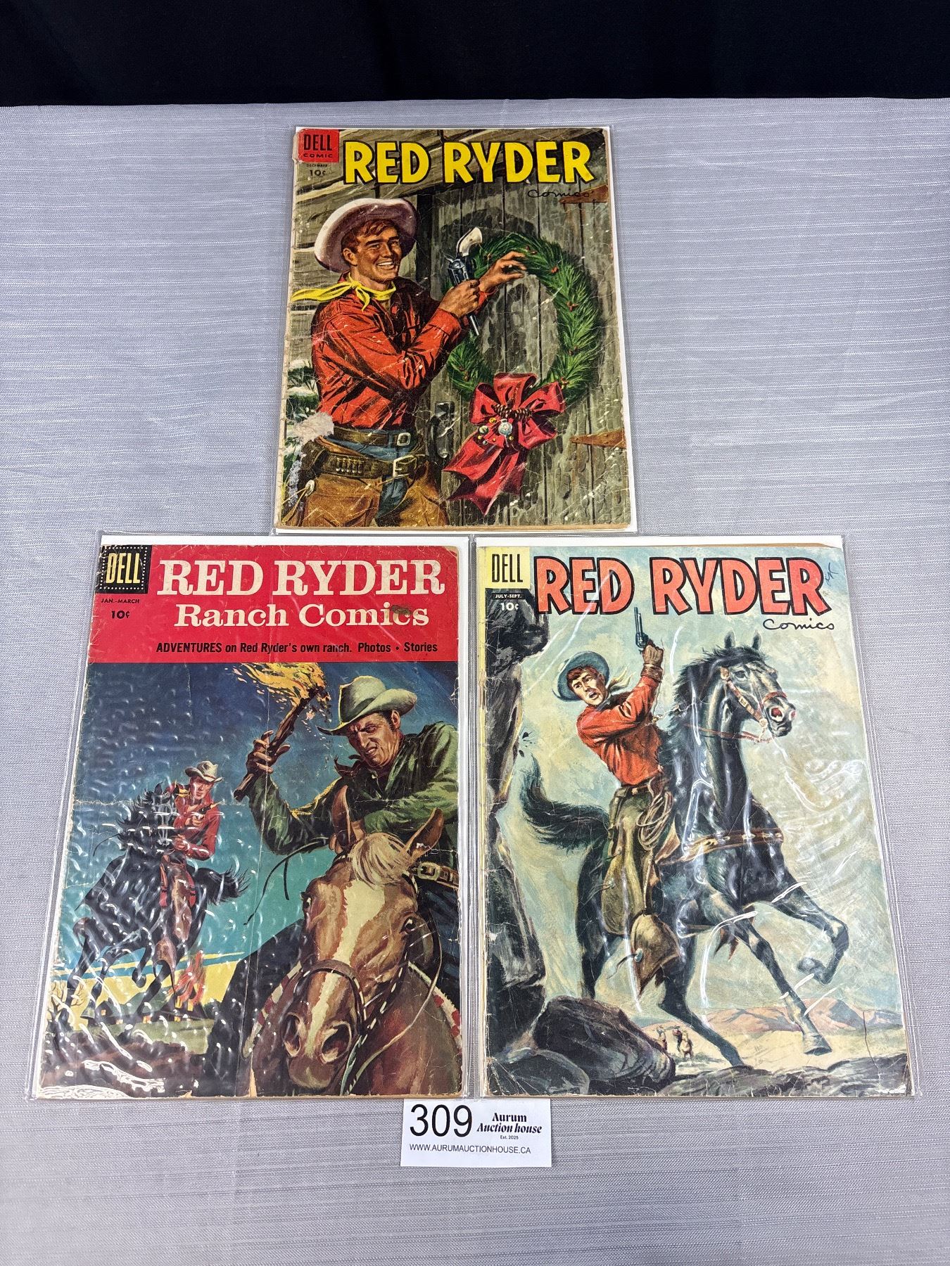 Lot of 3 1940s Dell Red Ryder Comics On Board In Bag