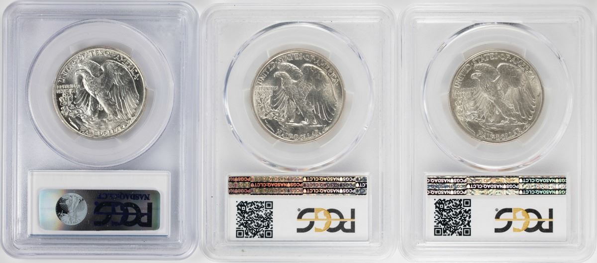 One Lot of (3) 1943 Walking Liberty Half Dollar Coins NGC MS64.