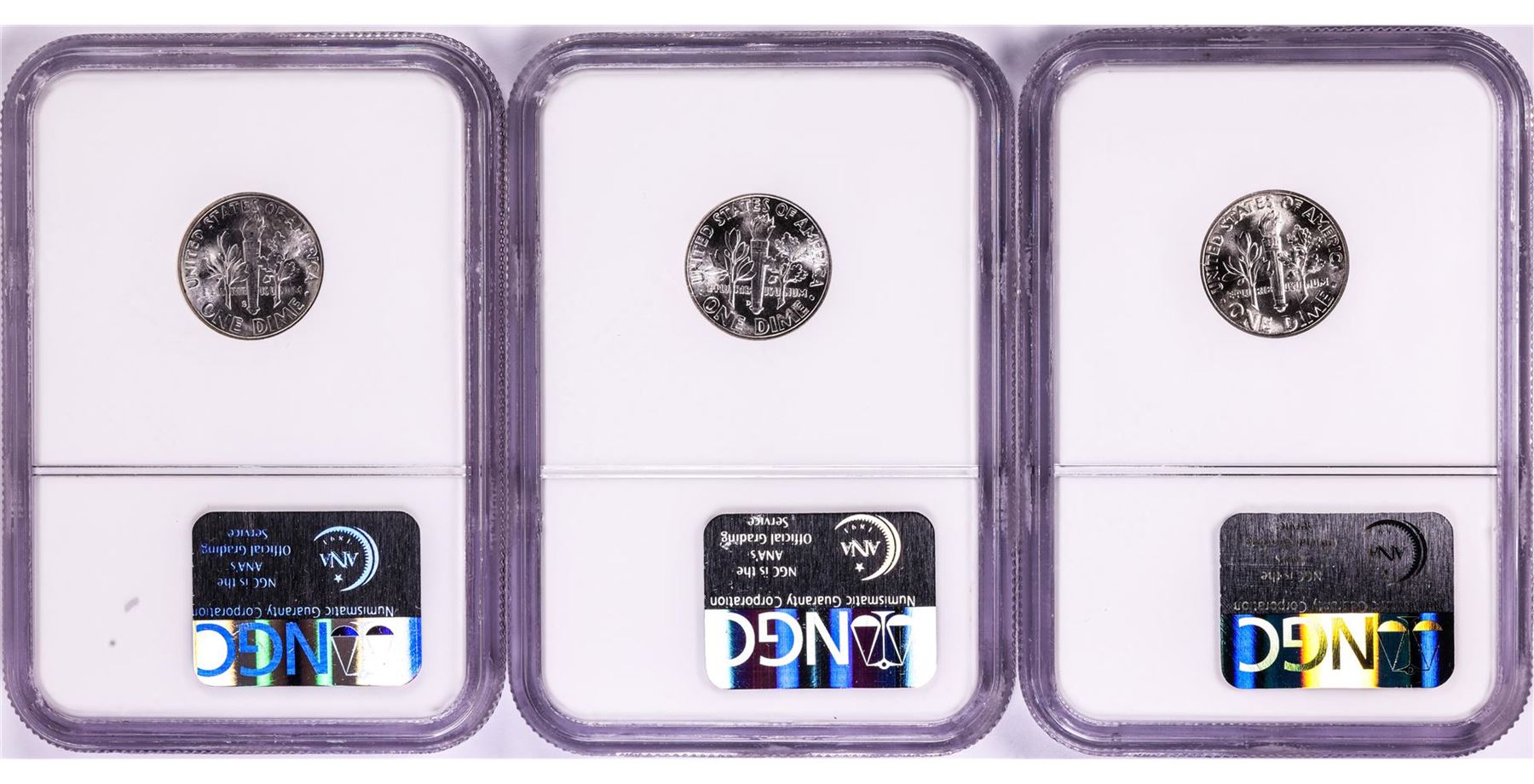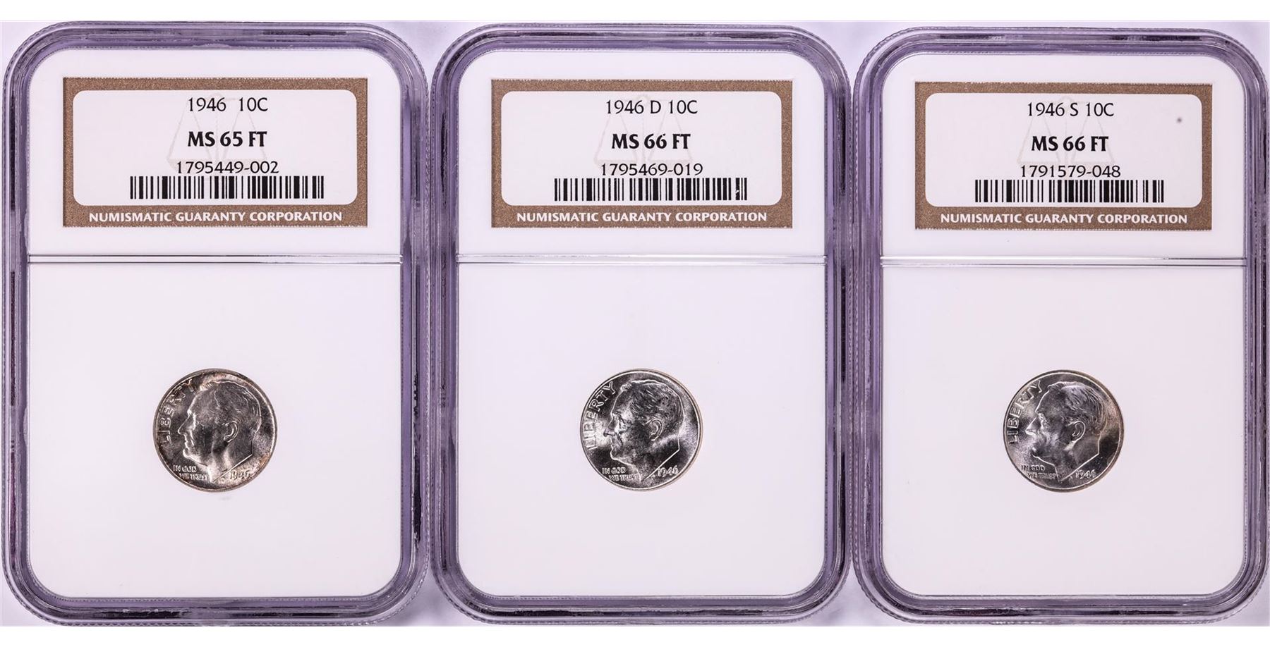 One Lot of (3) 1946 Roosevelt Dime Coins NGC MS65FT/MS66FT. NGC Certified.