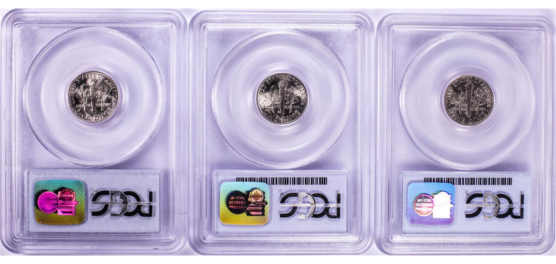One Lot of (3) 1946-S & 1947-S Roosevelt Dime Coins PCGS MS66. PCGS Graded.