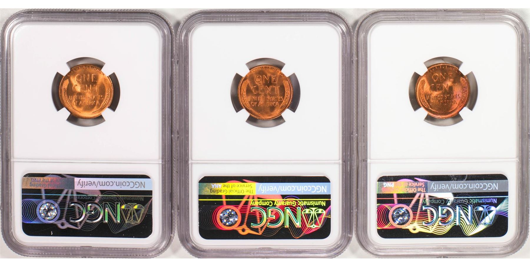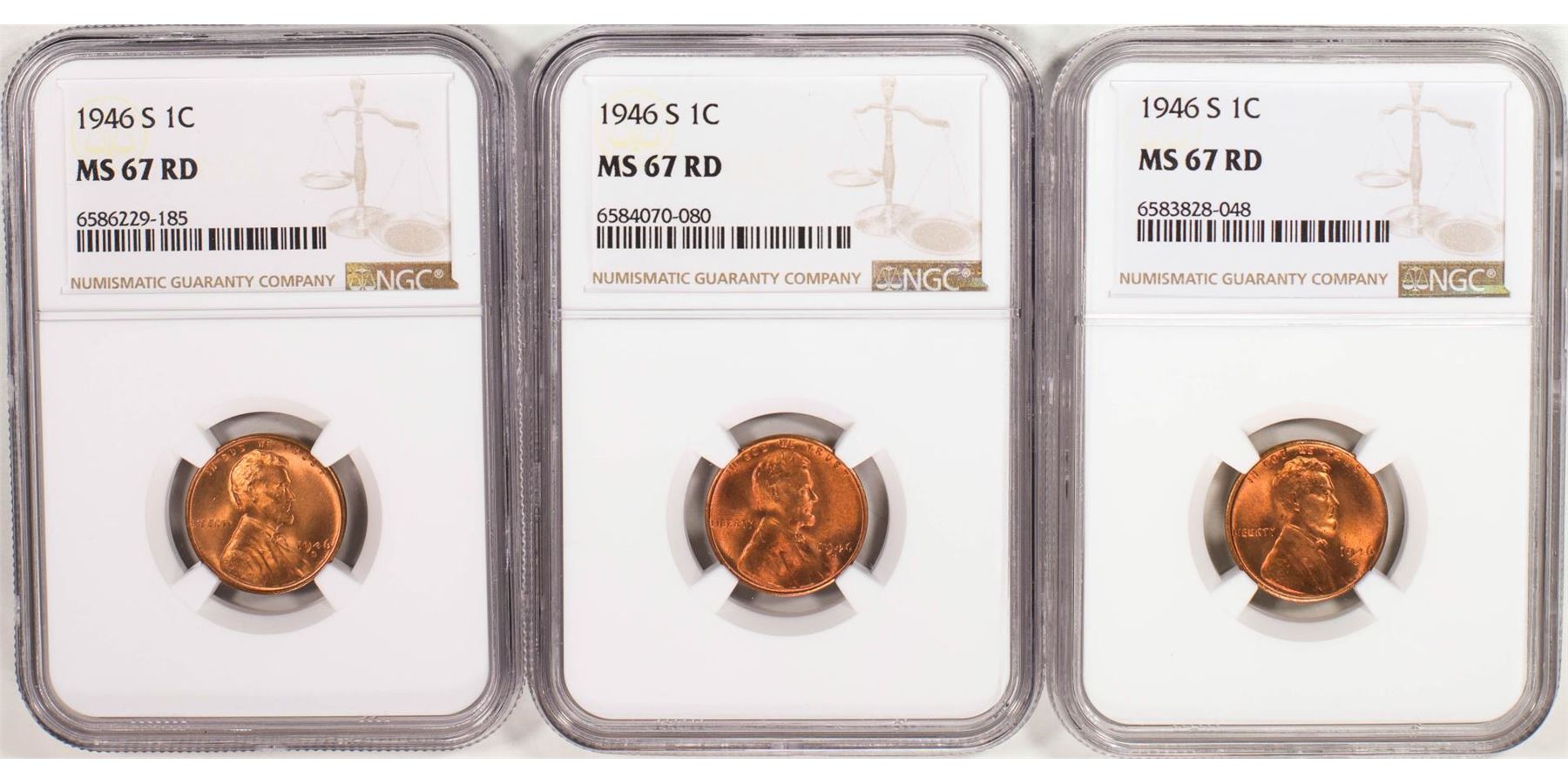One Lot of (3) 1946-S Lincoln Wheat Cent Coins NGC MS67RD. NGC Certified.