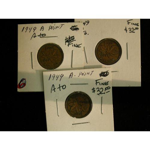 Lot of 3 1949 1¢ A to Denticules, All Fine-12