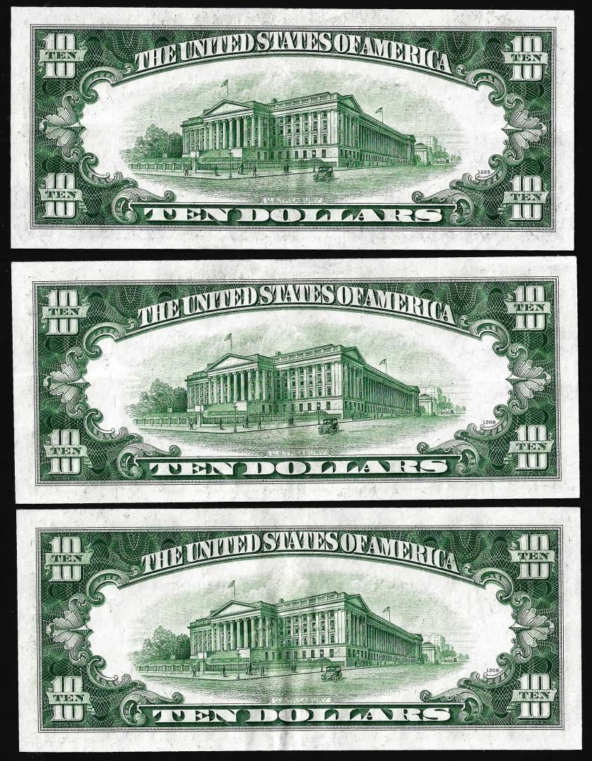 One Lot of (3) 1950 $10 Federal Reserve Notes Chicago.