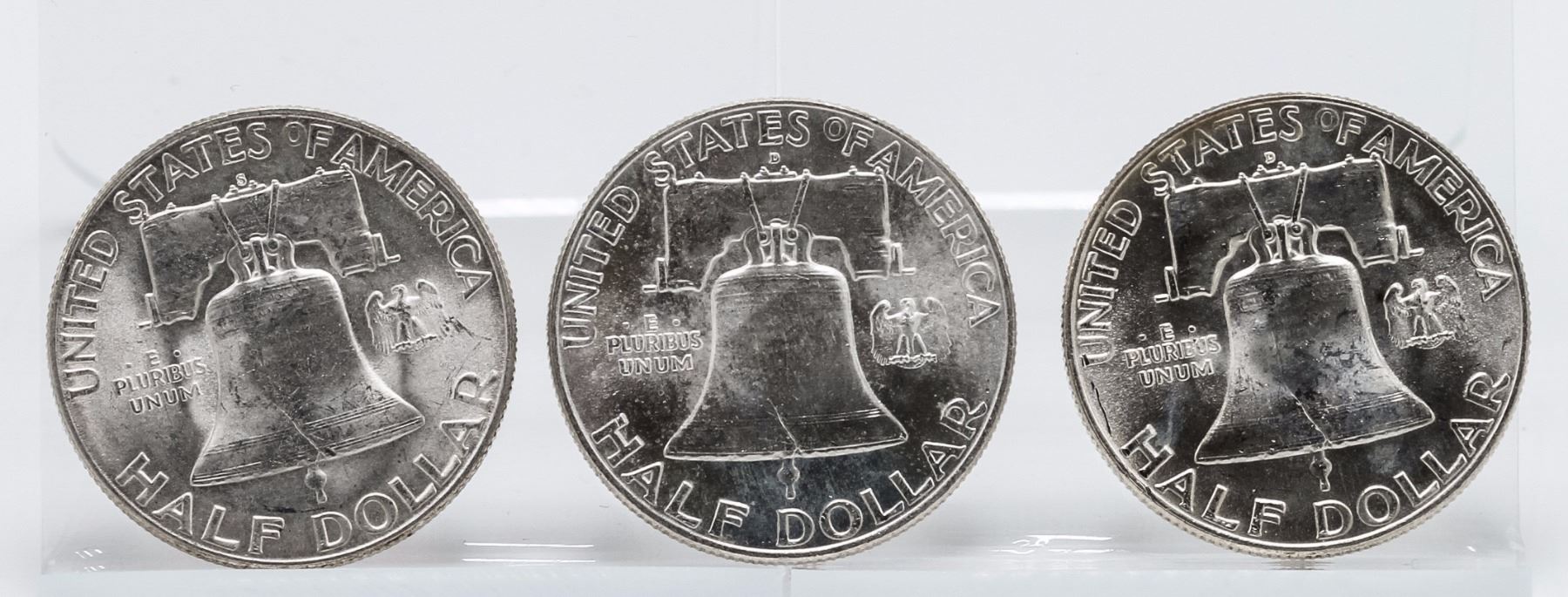 One Lot of (3) 1951, 1957, 1958 Franklin Half Dollars.
