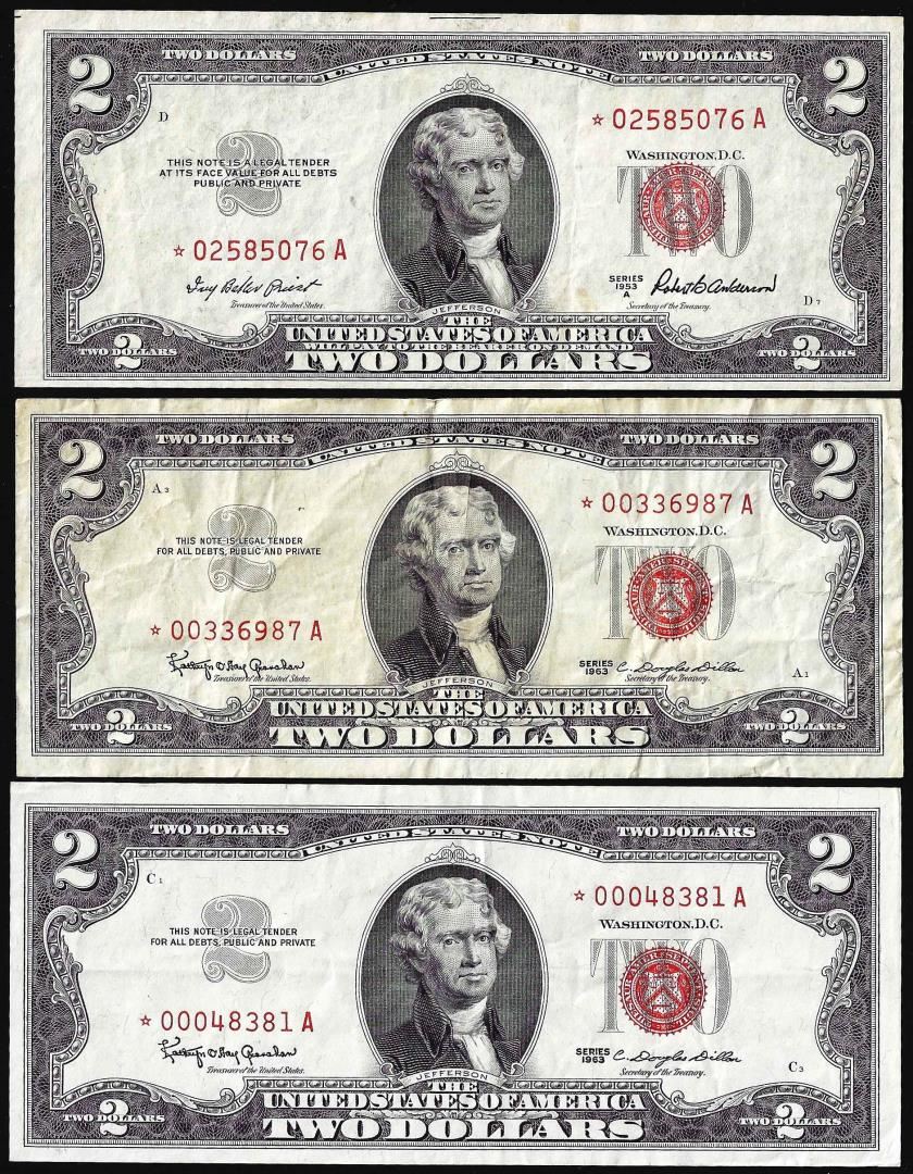 One Lot of (3) 1953/1963 $2 Legal Tender Stars Notes.