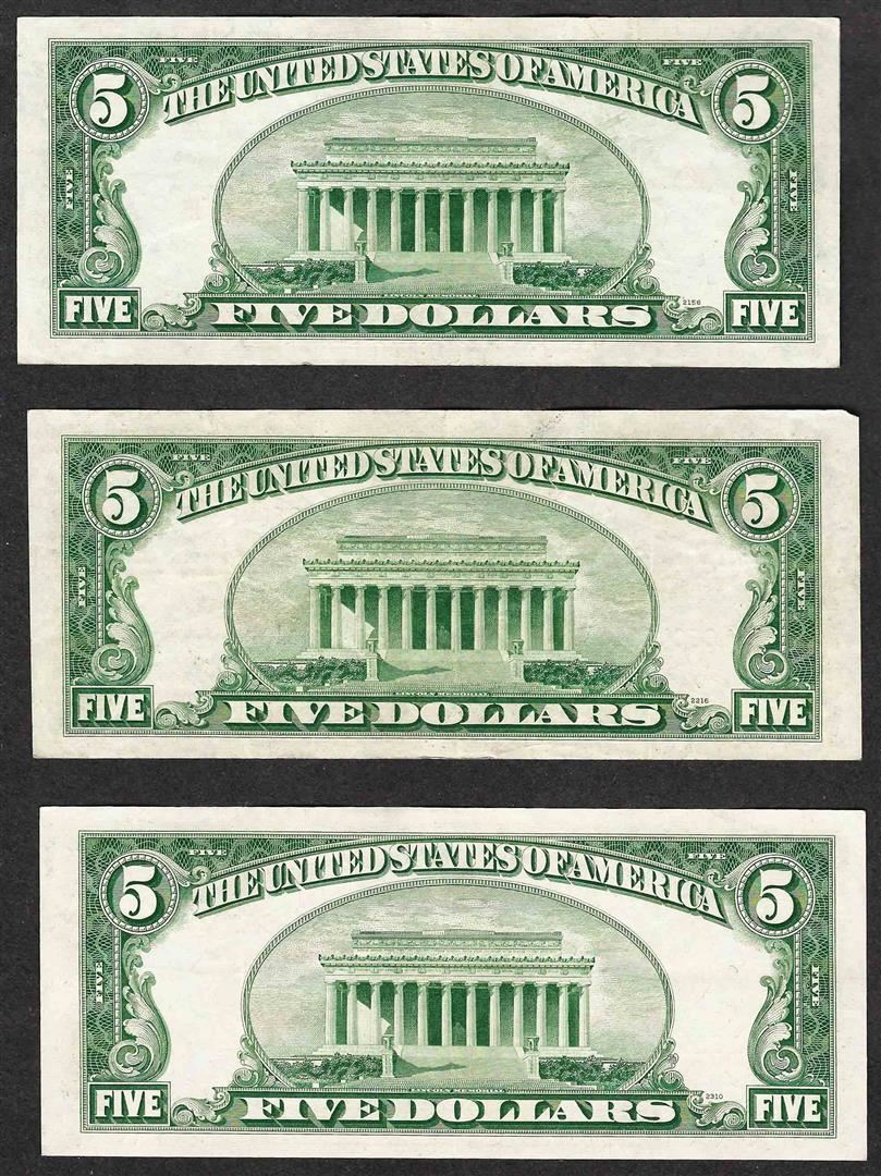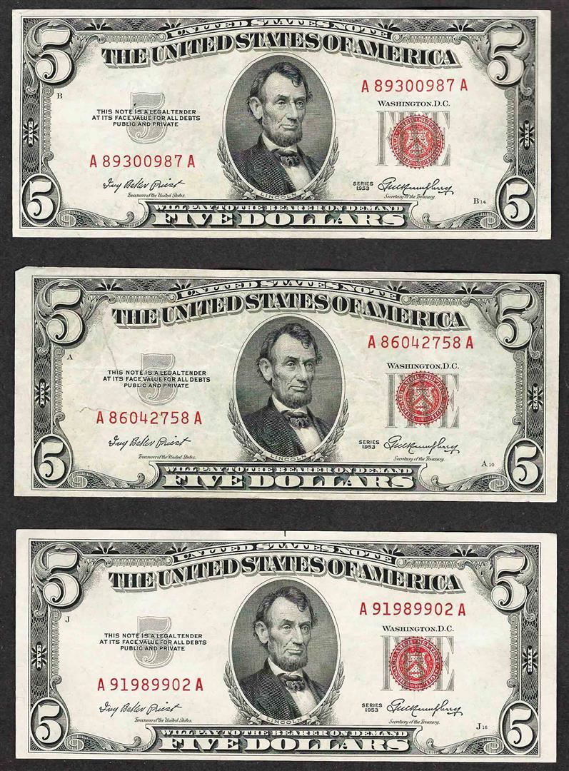 One Lot of (3) 1953 $5 Legal Tender Notes.