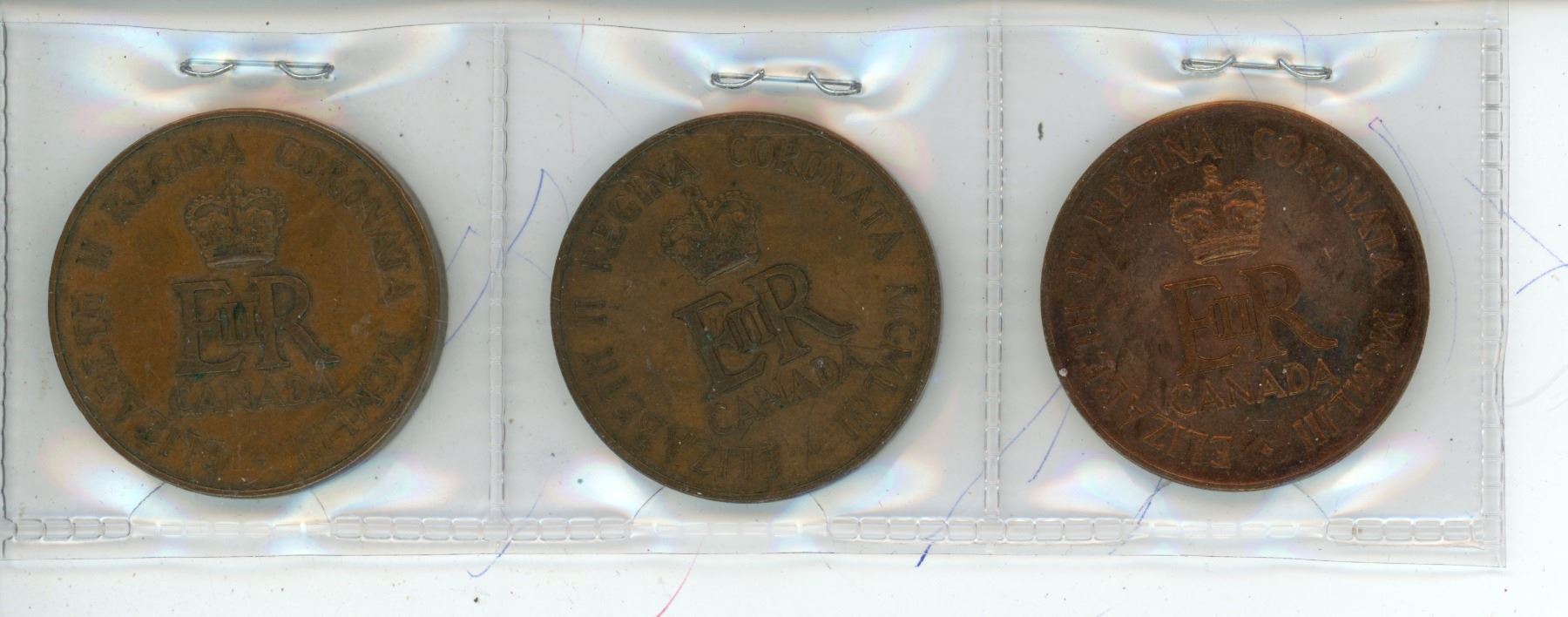 Lot of 3 1953 Queen Elizabeth Coronation Bronze medals