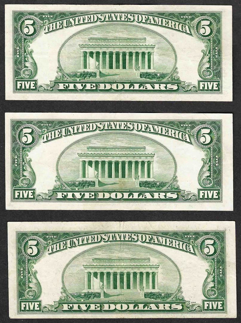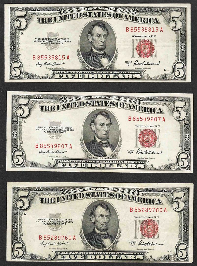 One Lot of (3) 1953A $5 Legal Tender Notes.