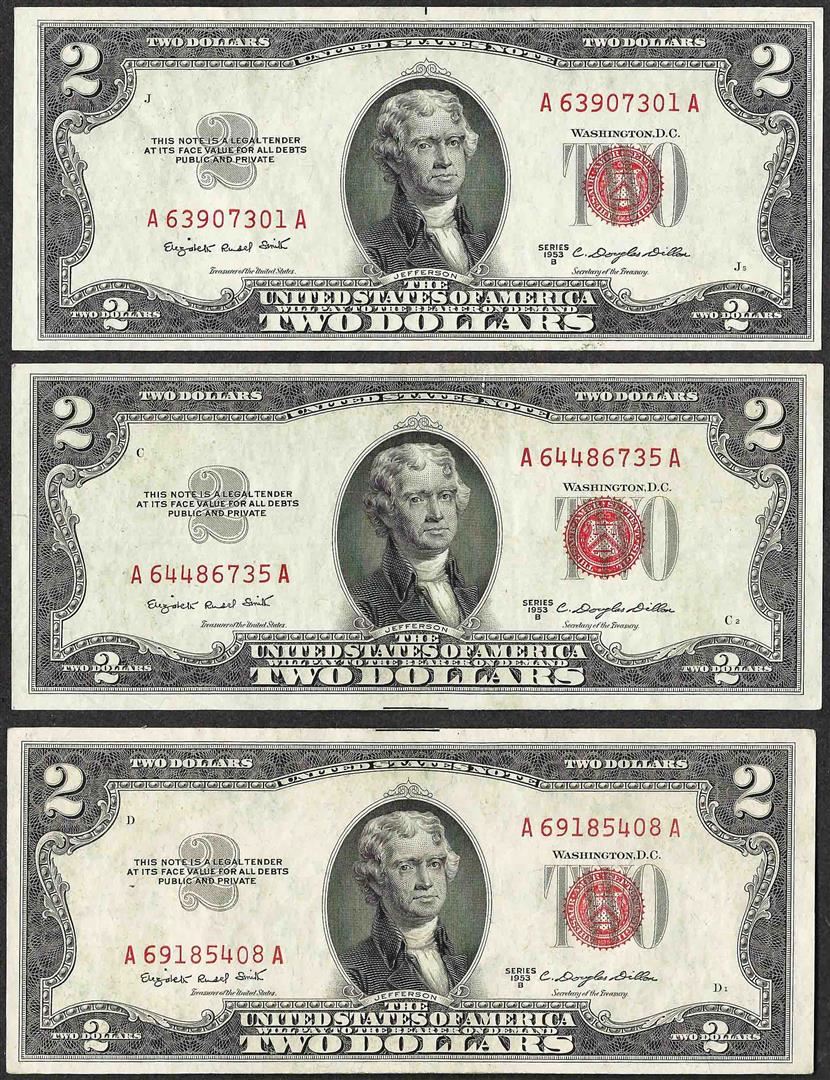 One Lot of (3) 1953B $2 Legal Tender Notes.