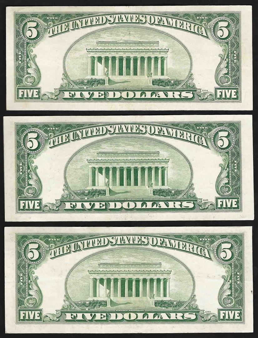 One Lot of (3) 1953B $5 Legal Tender Notes.