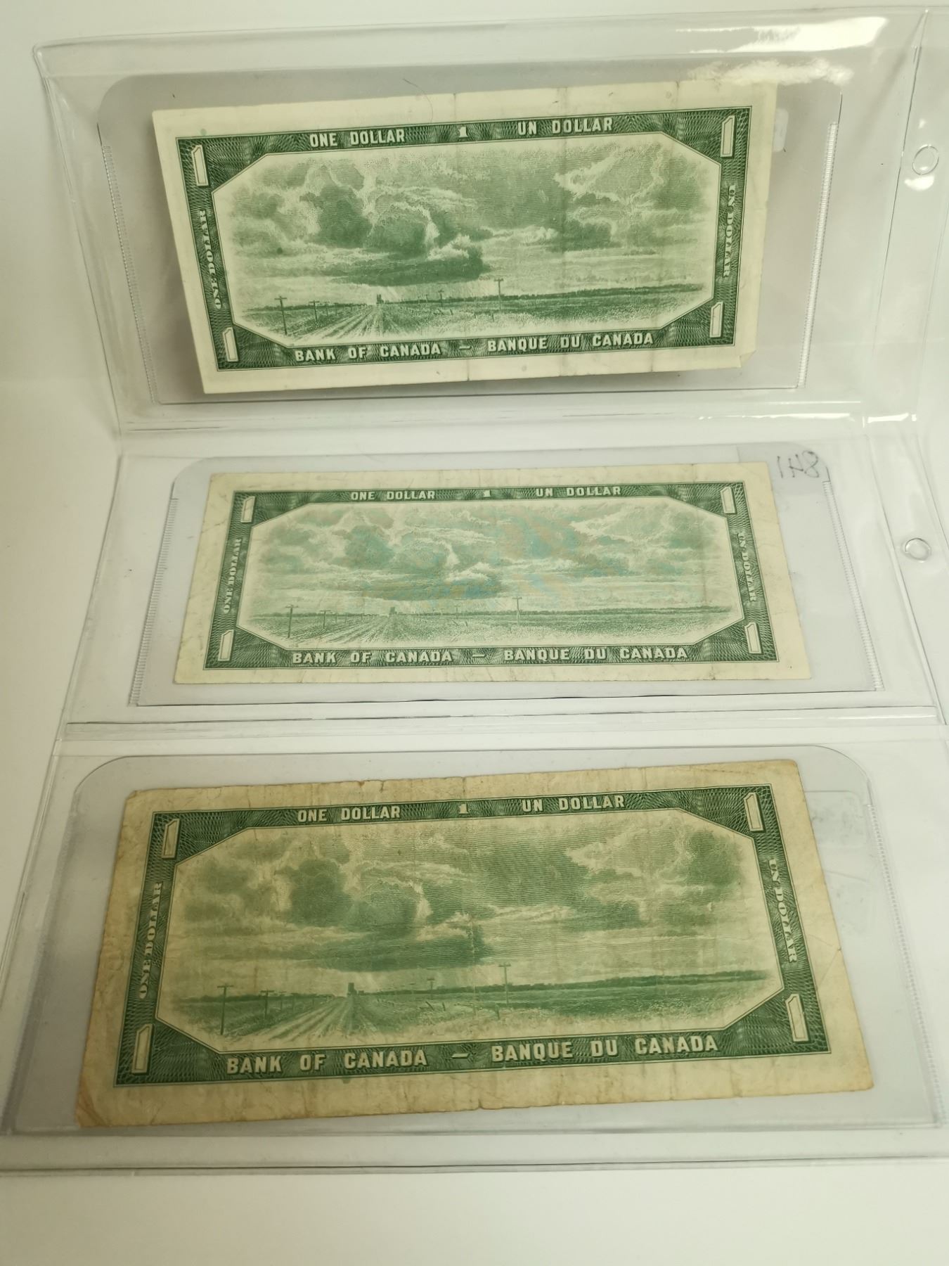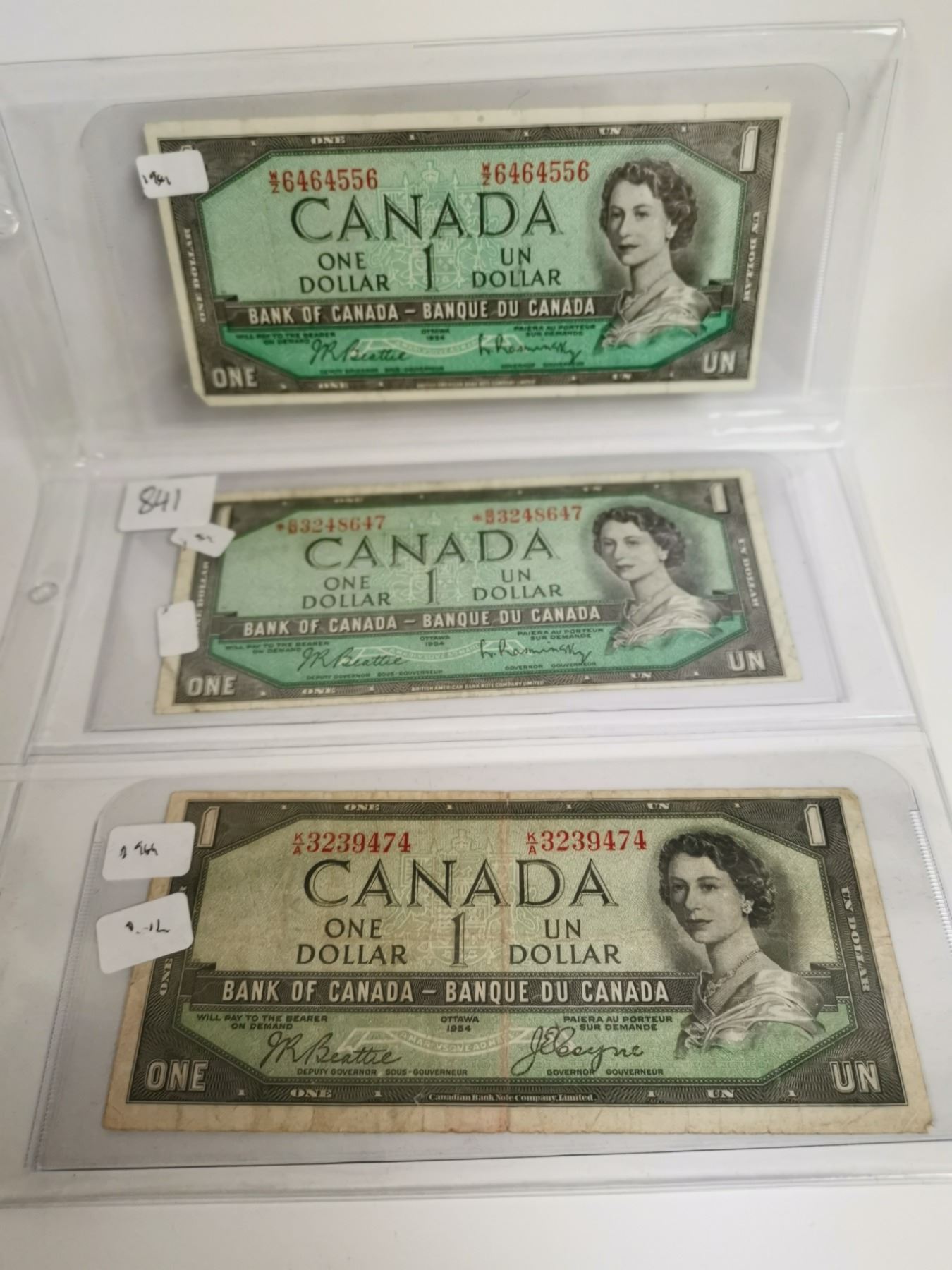 Lot of 3 - 1954 Canadian 1 dollar bills