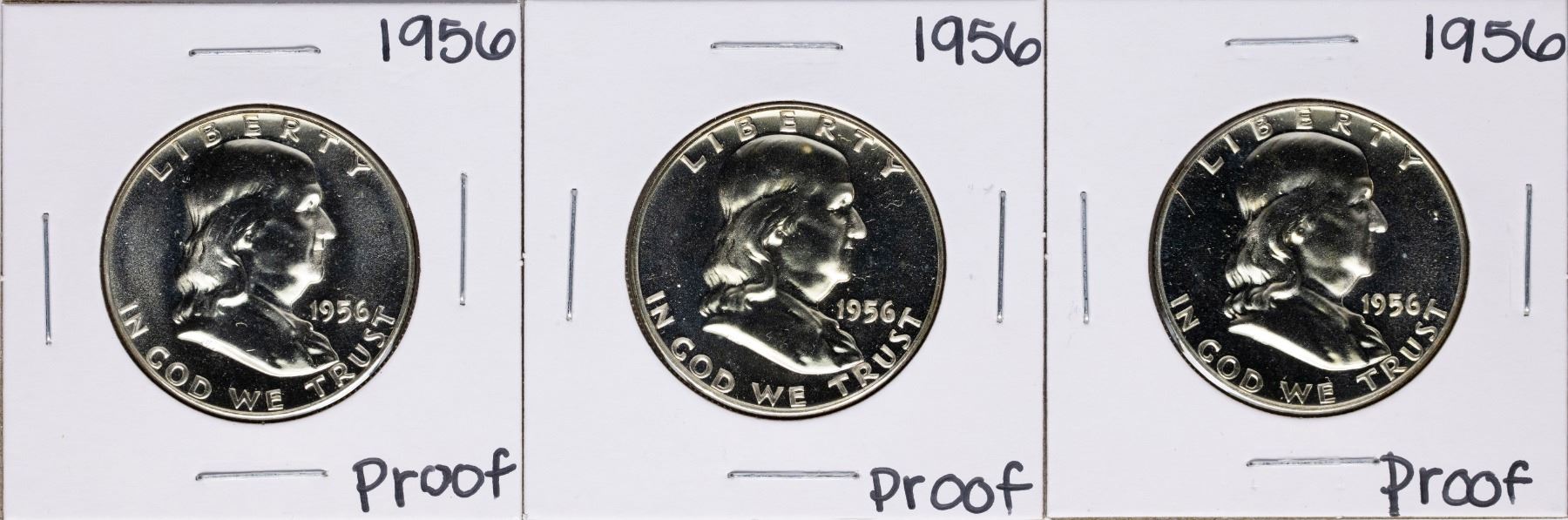 One Lot of (3) 1956 Proof Franklin Half Dollar Coins.