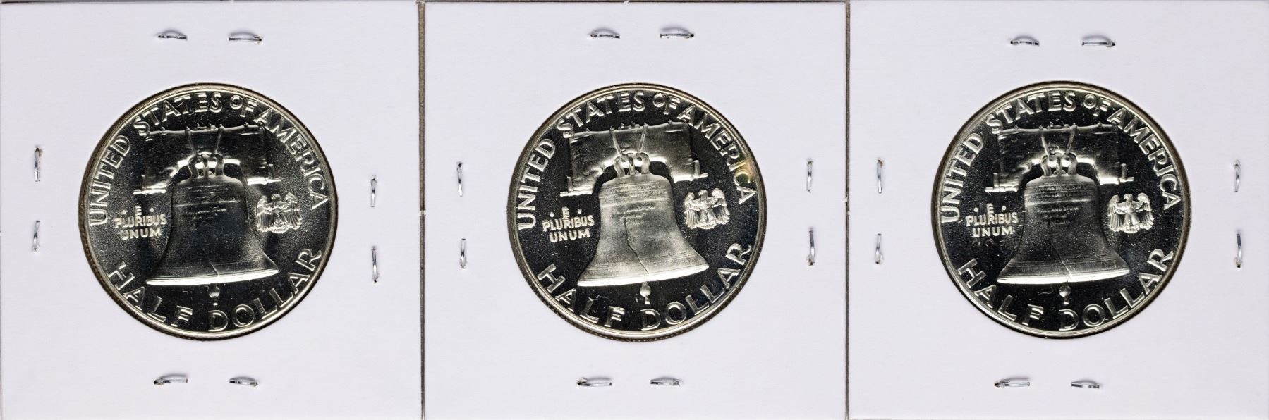 One Lot of (3) 1956 Proof Franklin Half Dollar Coins.