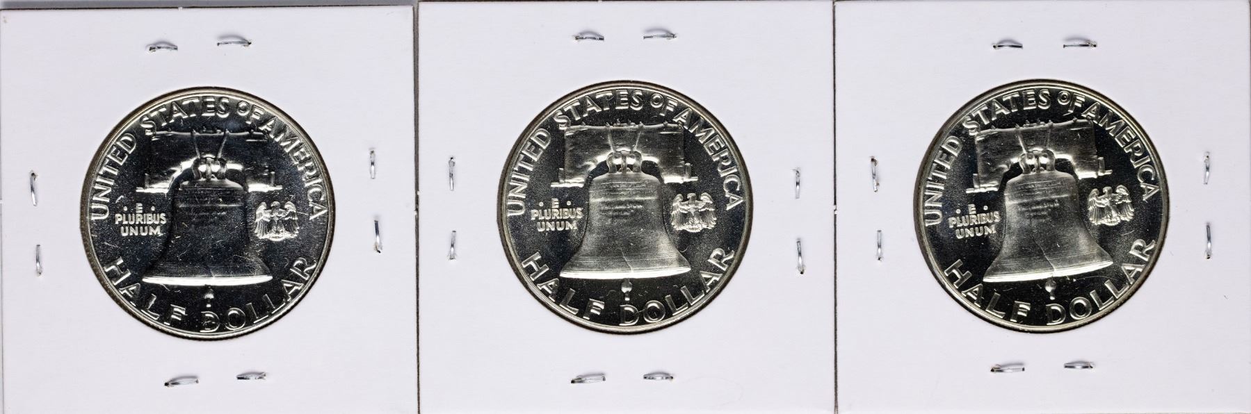 One Lot of (3) 1956 Proof Franklin Half Dollar Coins.