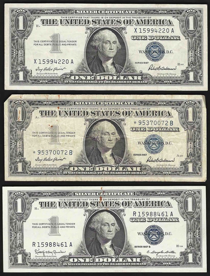 One Lot of (3) 1957 $1 Silver Certificate Notes.