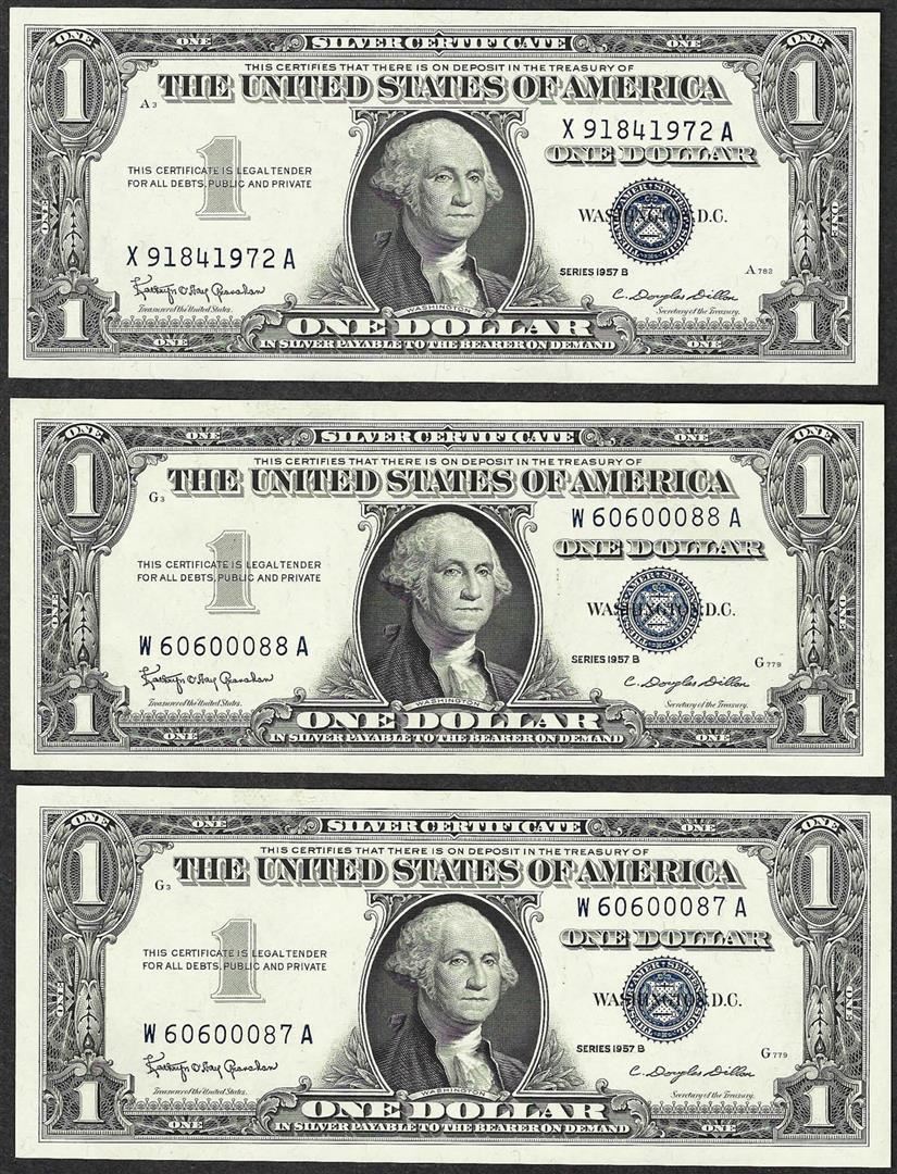 One Lot of (3) 1957B $1 Silver Certificate Notes.