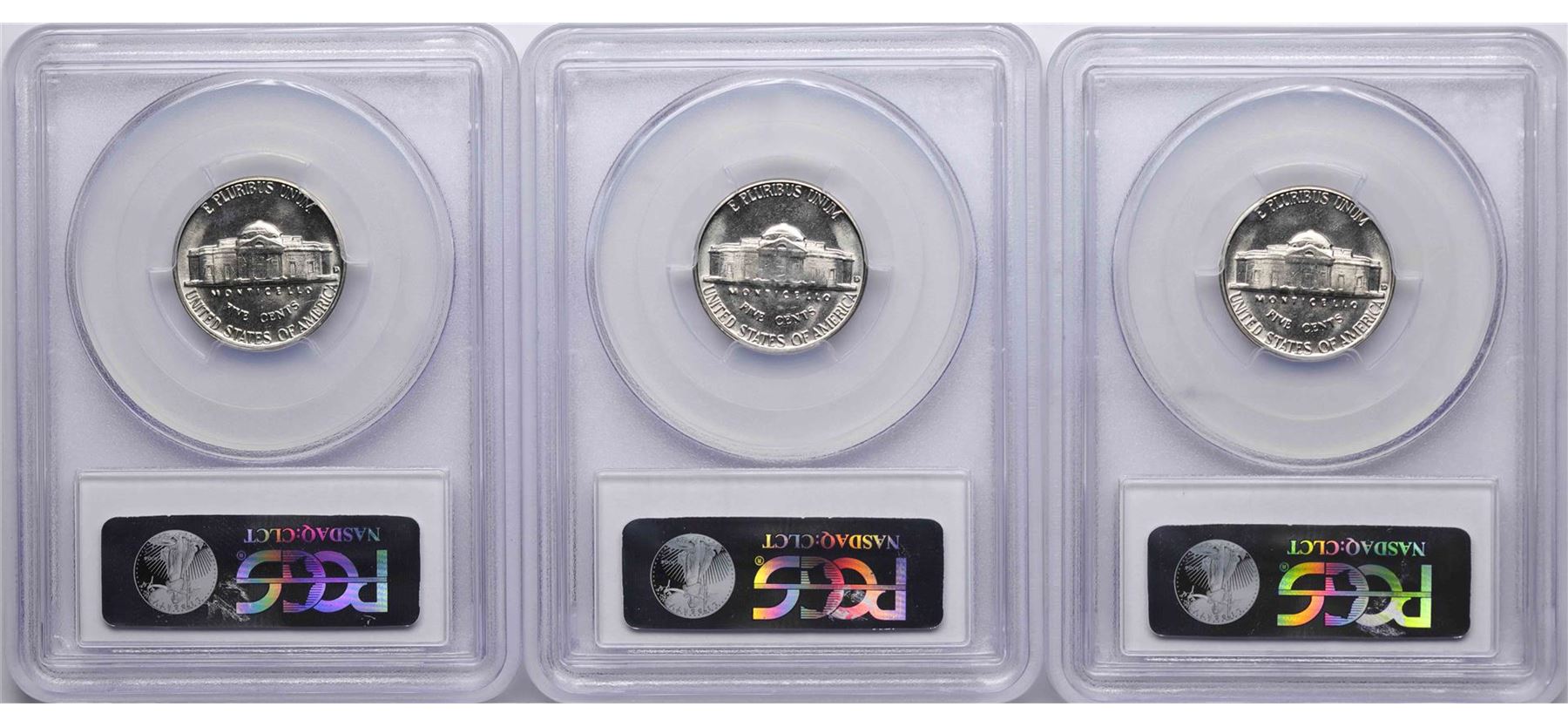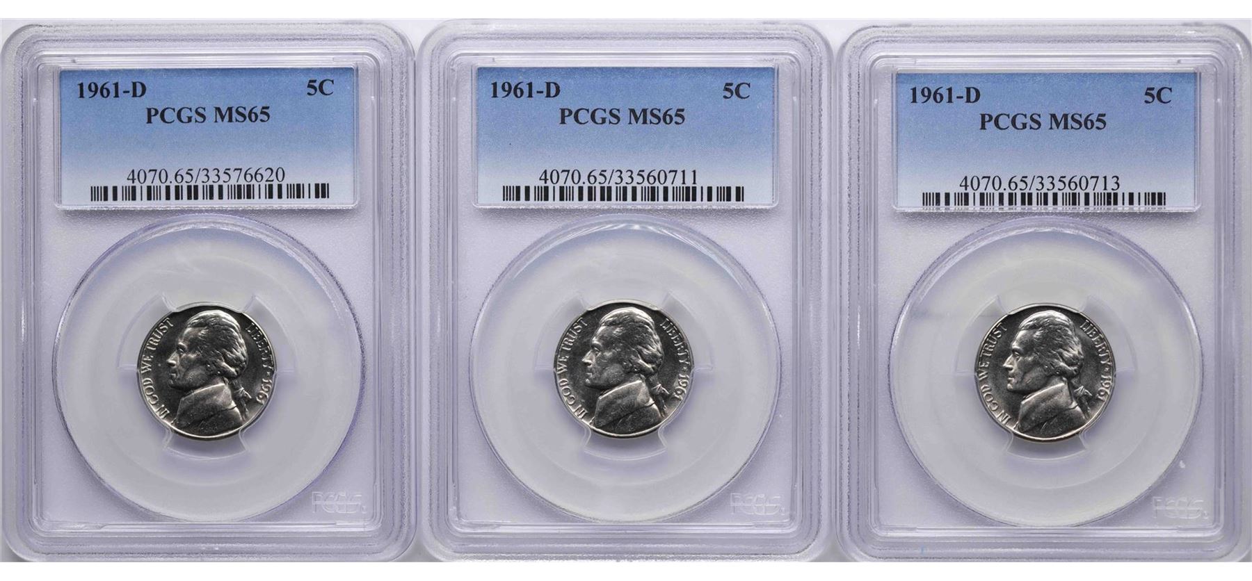 One Lot of (3) 1961-D Jefferson Nickel Coins PCGS MS65. PCGS Graded.