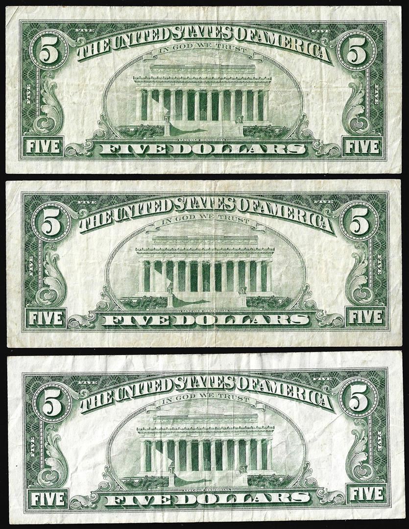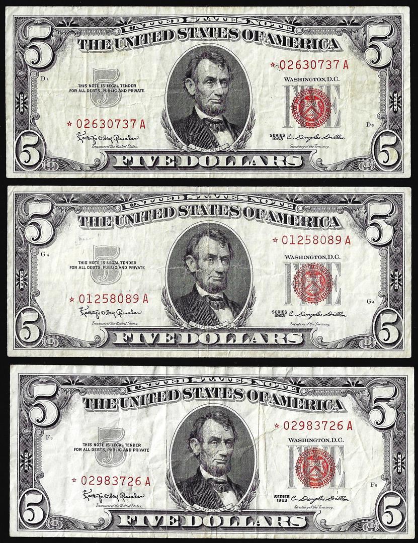 One Lot of (3) 1963 $5 Legal Tender Star Notes.
