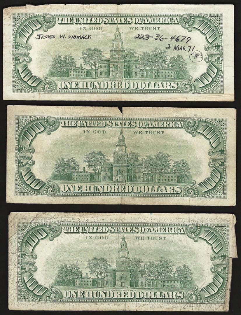 One Lot of (3) 1966 $100 Legal Tender Notes.