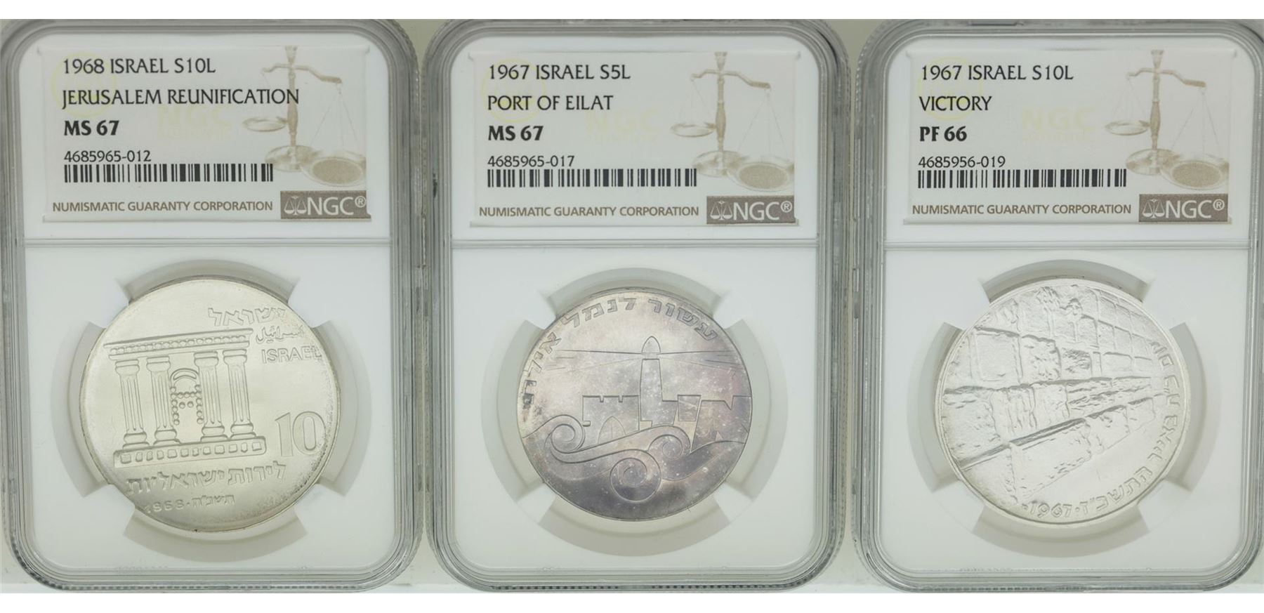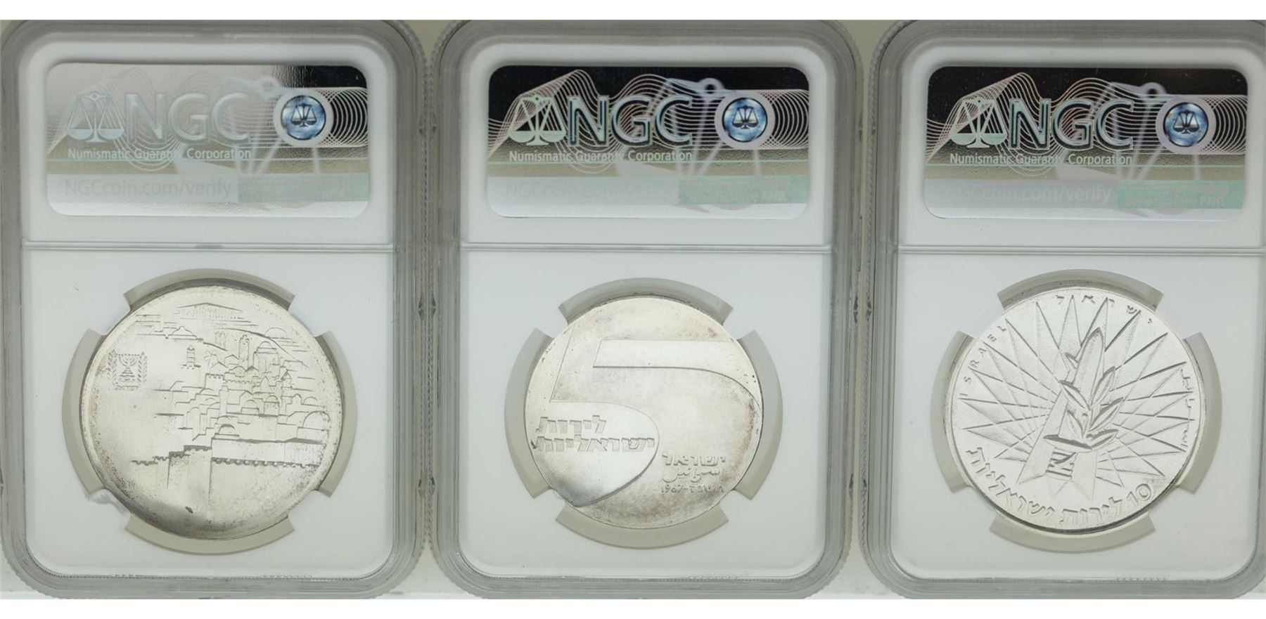 Lot of (3) 1967/1968 Israel Commemorative Silver Coins NGC PF66/MS67