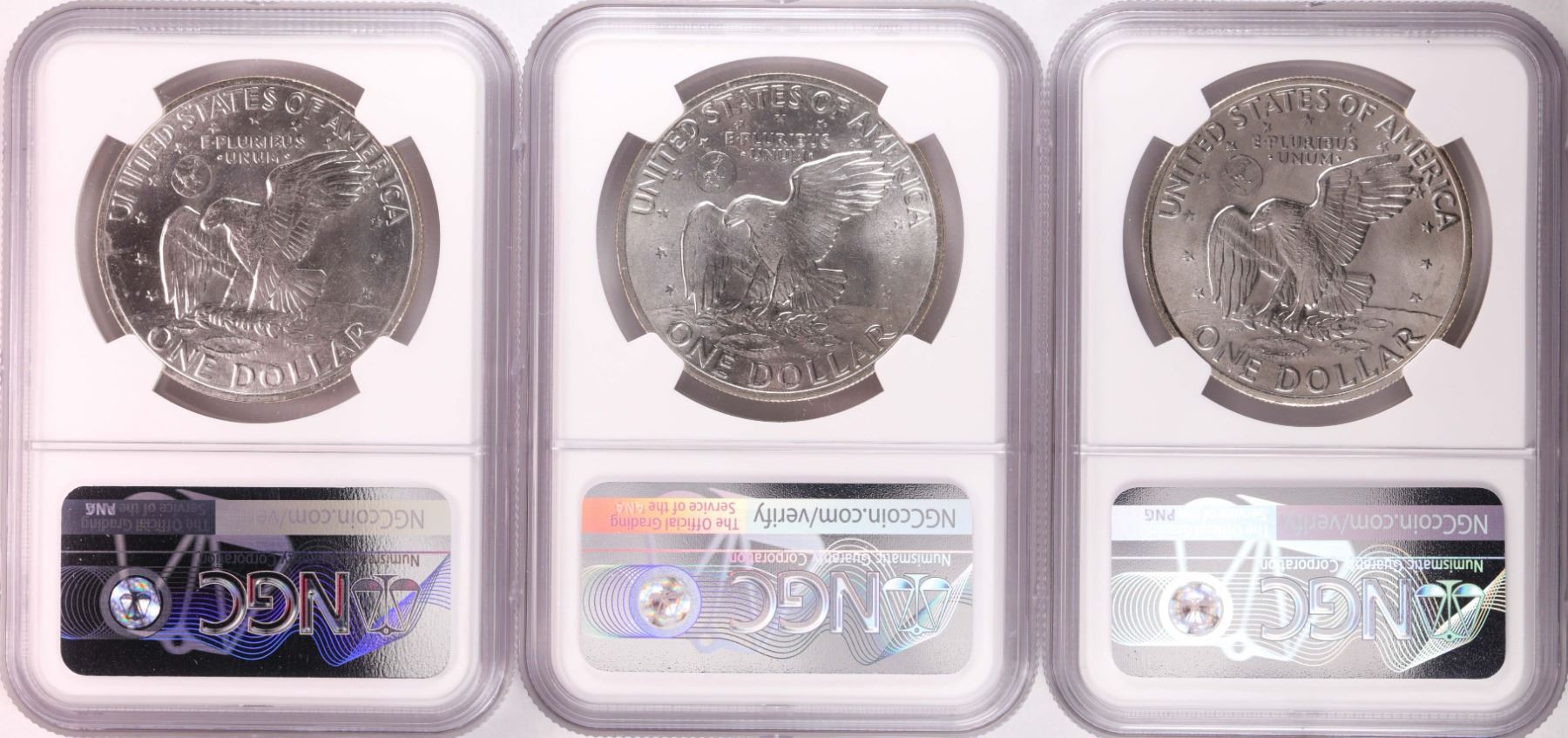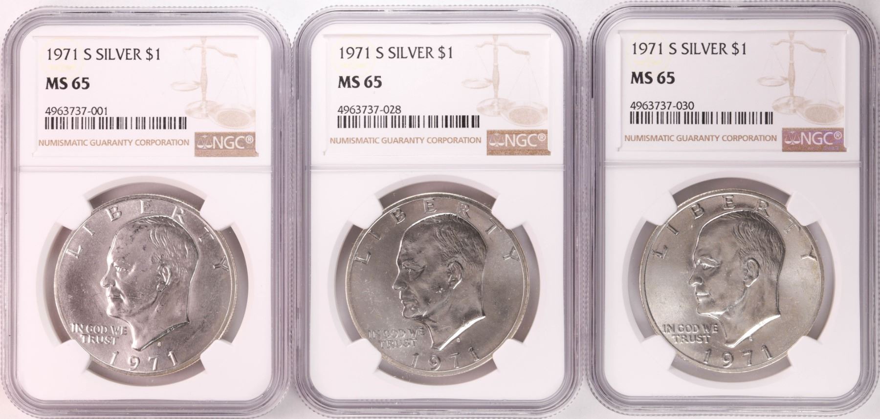 One Lot of (3) 1971-S Eisenhower Silver Dollar Coins NGC MS65.