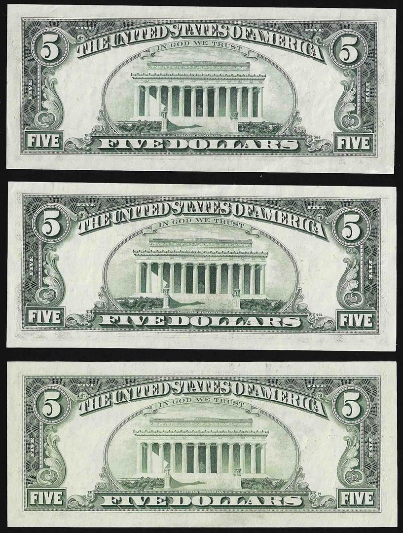 Lot of (3) 1977 & 1981 $5 Federal Reserve Notes Choice Uncirculated