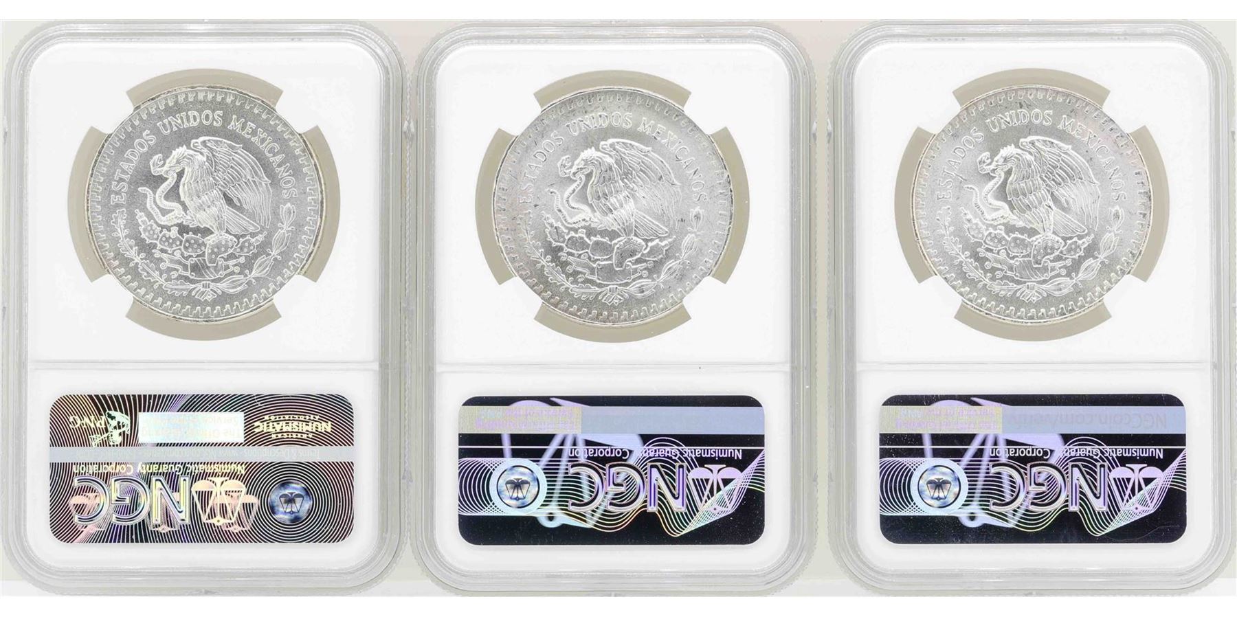 One Lot of (3) 1983Mo 1 Onza Silver Libertad Coins NGC MS66. NGC Certified.