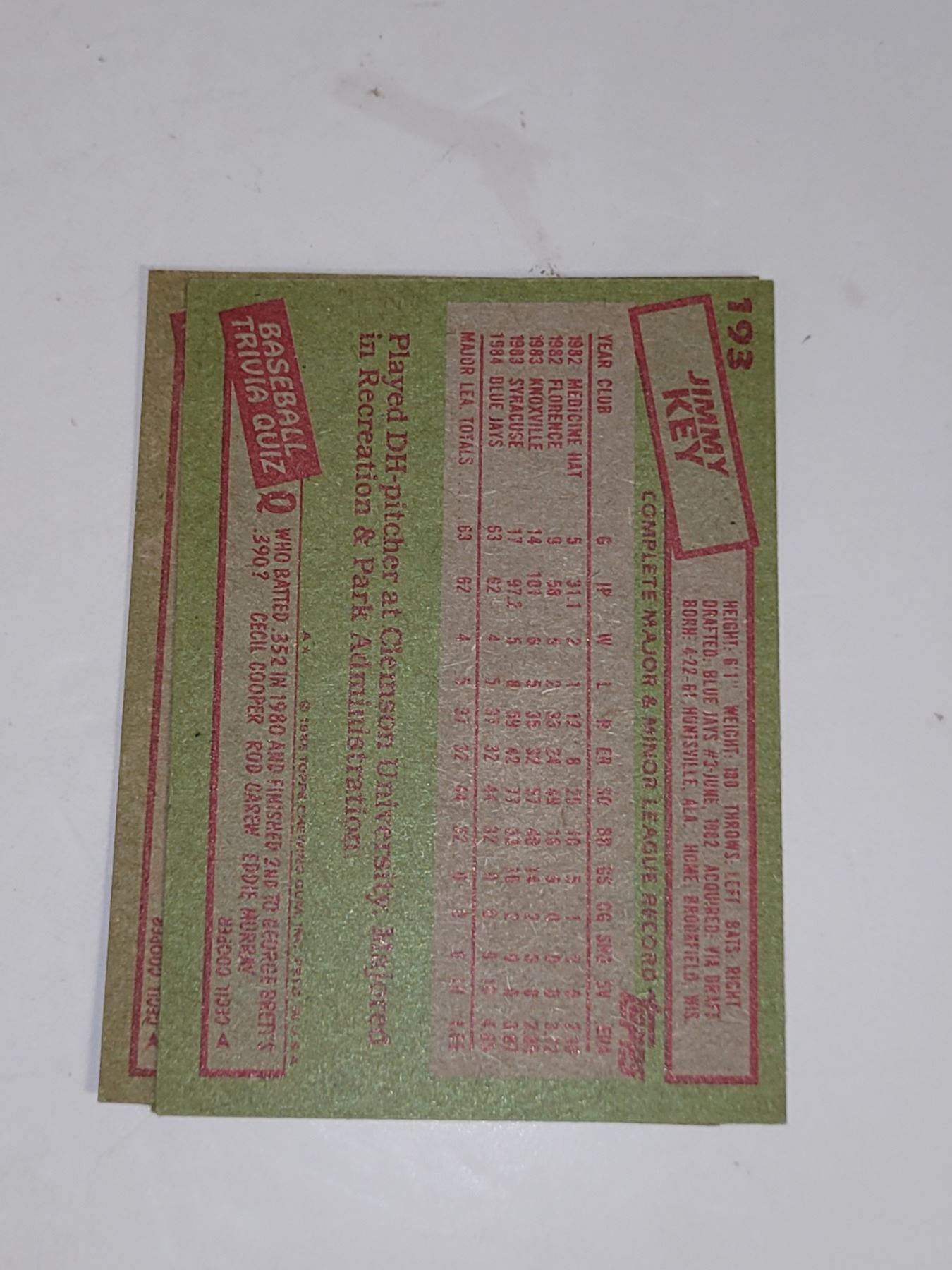 Lot of 3 1985 Topps Jimmy Key Baseball Cards