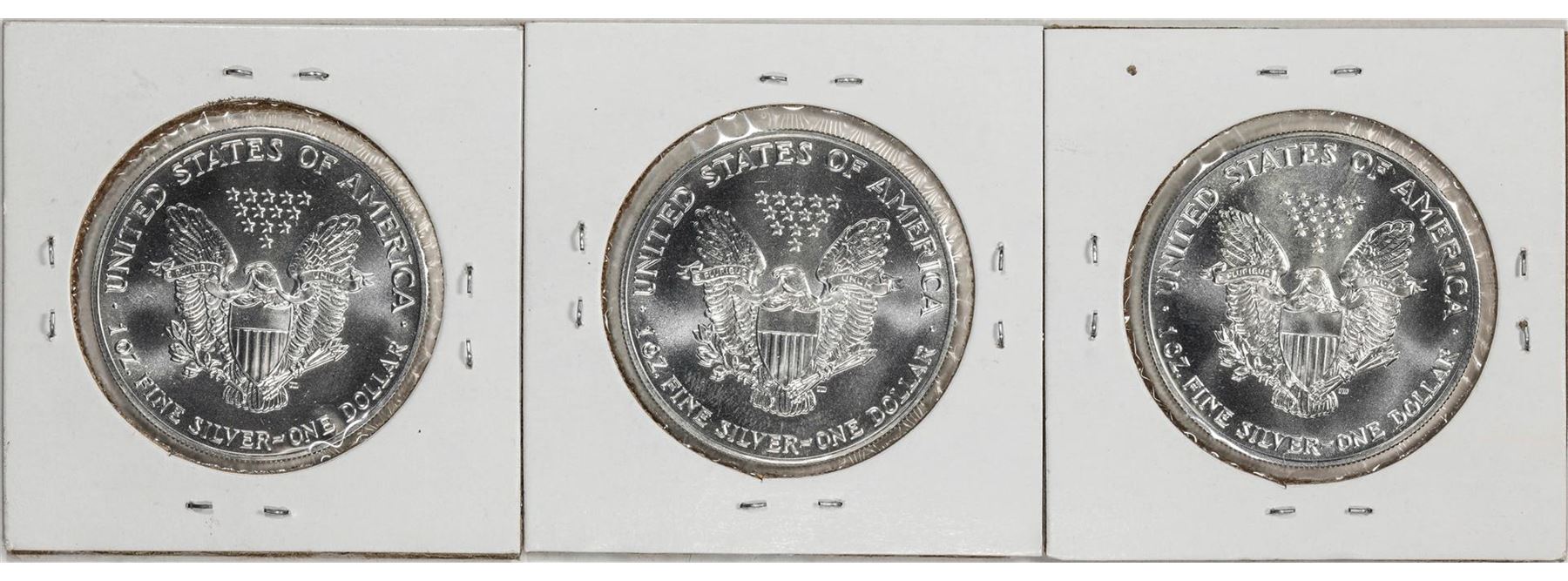 One Lot of (3) 1992 $1 American Silver Eagle Coins.