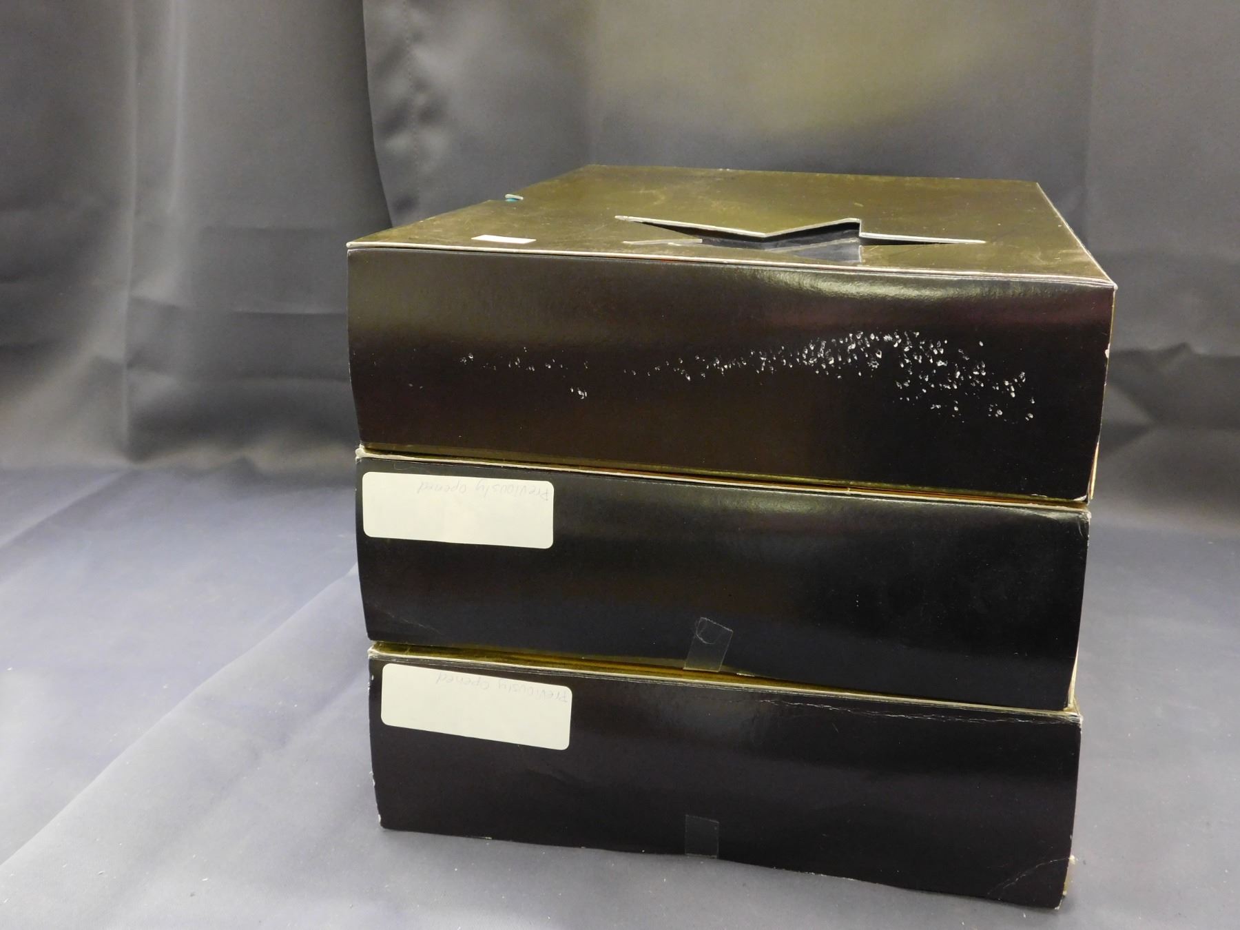 previously opened. black and white outfit appears to be new unopened.