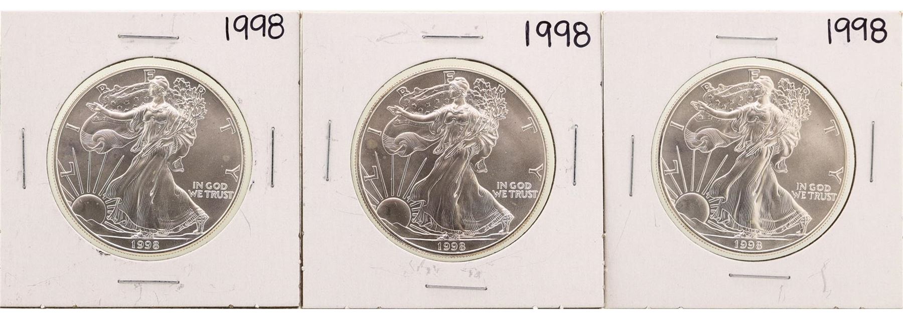 One Lot of (3) 1998 $1 American Silver Eagle Coins.