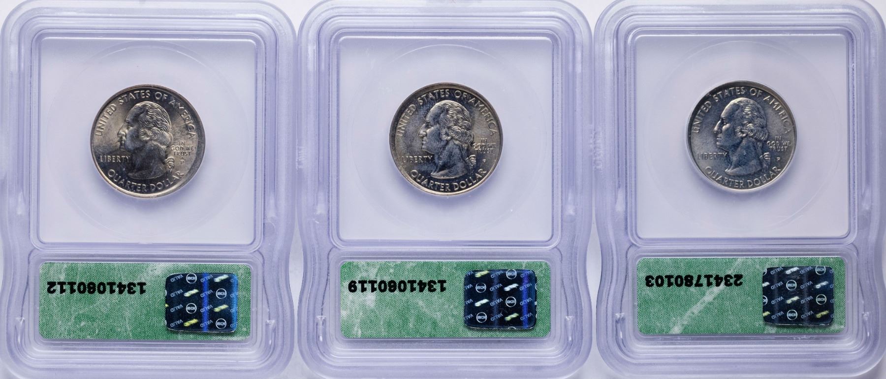 Lot of (3) 1999-P Georgia State Quarter Coins ICG MS65 Struck Slightly Off center