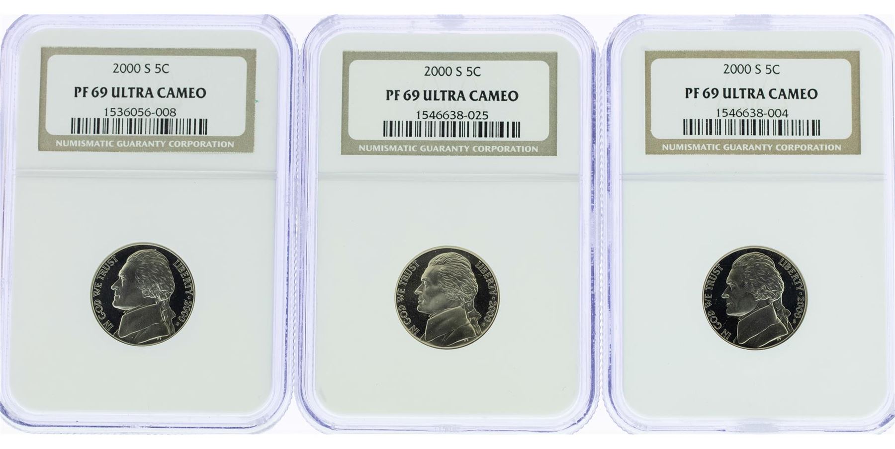 One Lot of (3) 2000-S Jefferson Nickel Coins NGC PF69 Ultra Cameo. NGC Certified.