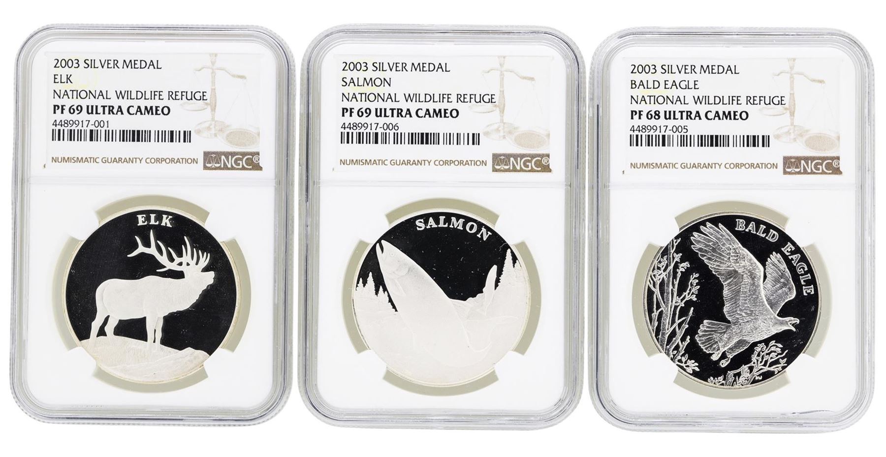 Lot of (3) 2003 National Wildlife Refuge Silver Medals NGC PF68/PF69 Ultra Cameo