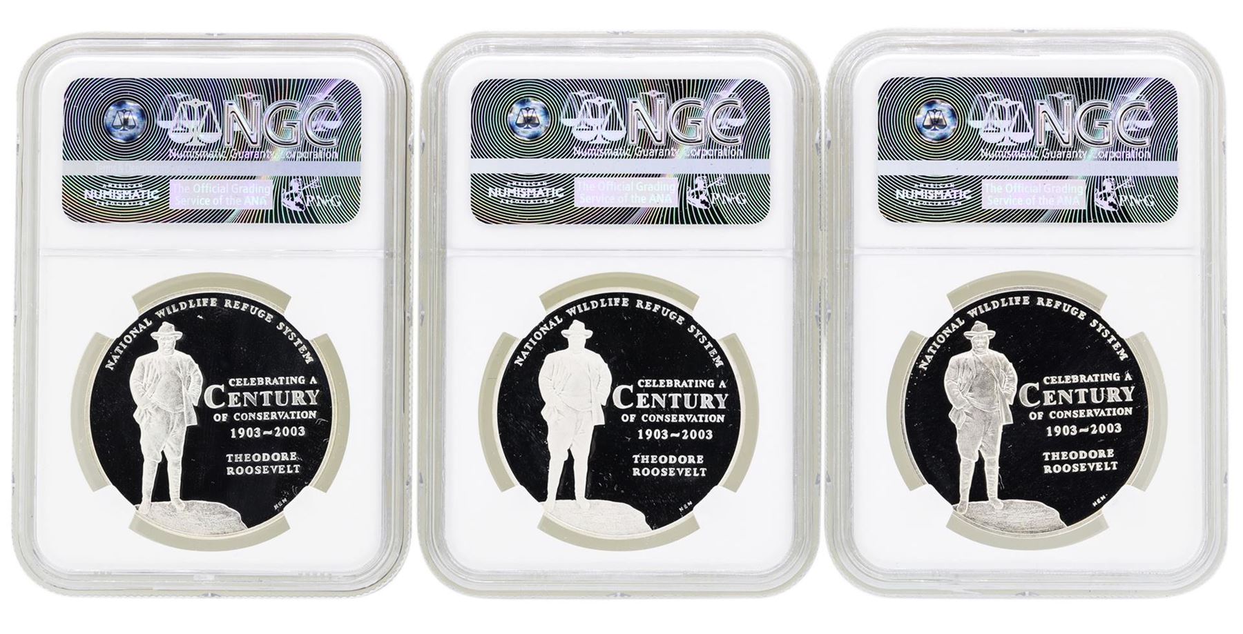 One Lot of (3) 2003 National Wildlife Refuge Silver Medals NGC PF68/PF69 Ultra Cameo. NGC Certified.