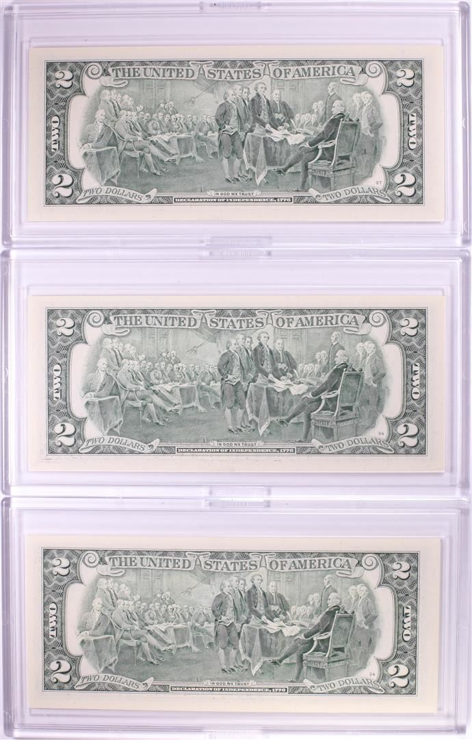 Lot of (3) 2003A $2 Colorized Overprint Federal Reserve Notes in Cases