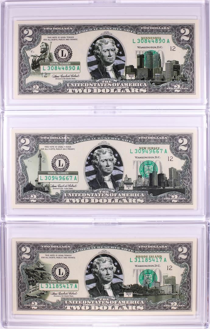 One Lot of (3) 2003A $2 Federal Reserve Notes Uncirculated in Cases.