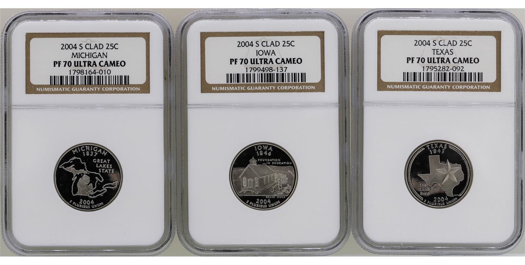 Lot of (3) 2004-S State Proof Quarter Coins NGC PF70 Ultra Cameo