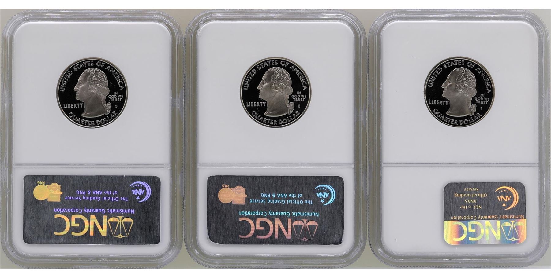 One Lot of (3) 2004-S State Proof Quarter Coins NGC PF70 Ultra Cameo. NGC Certified.
