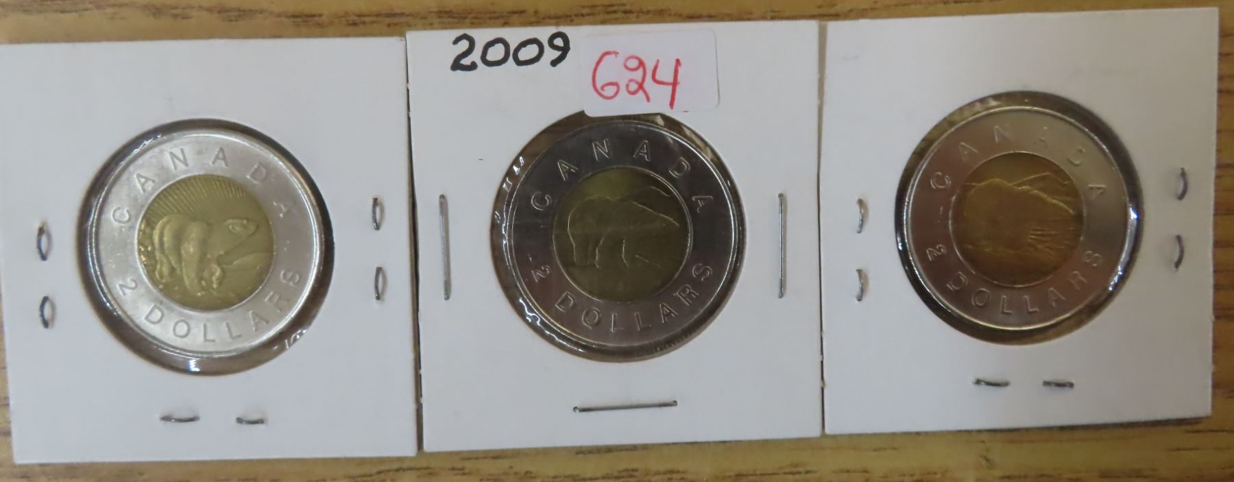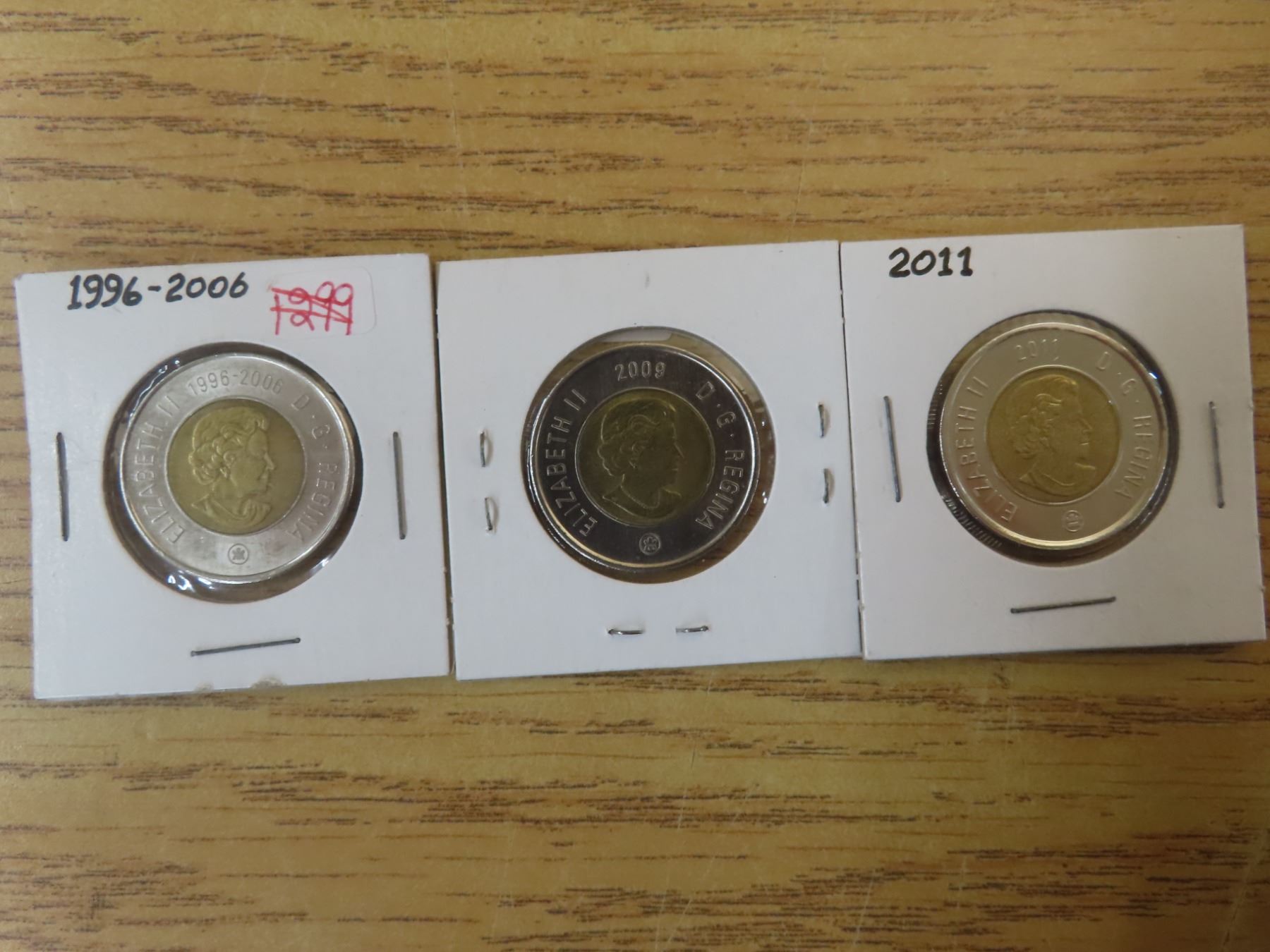 Lot of 3 (2006, 2009 and 2011) canadian toonies