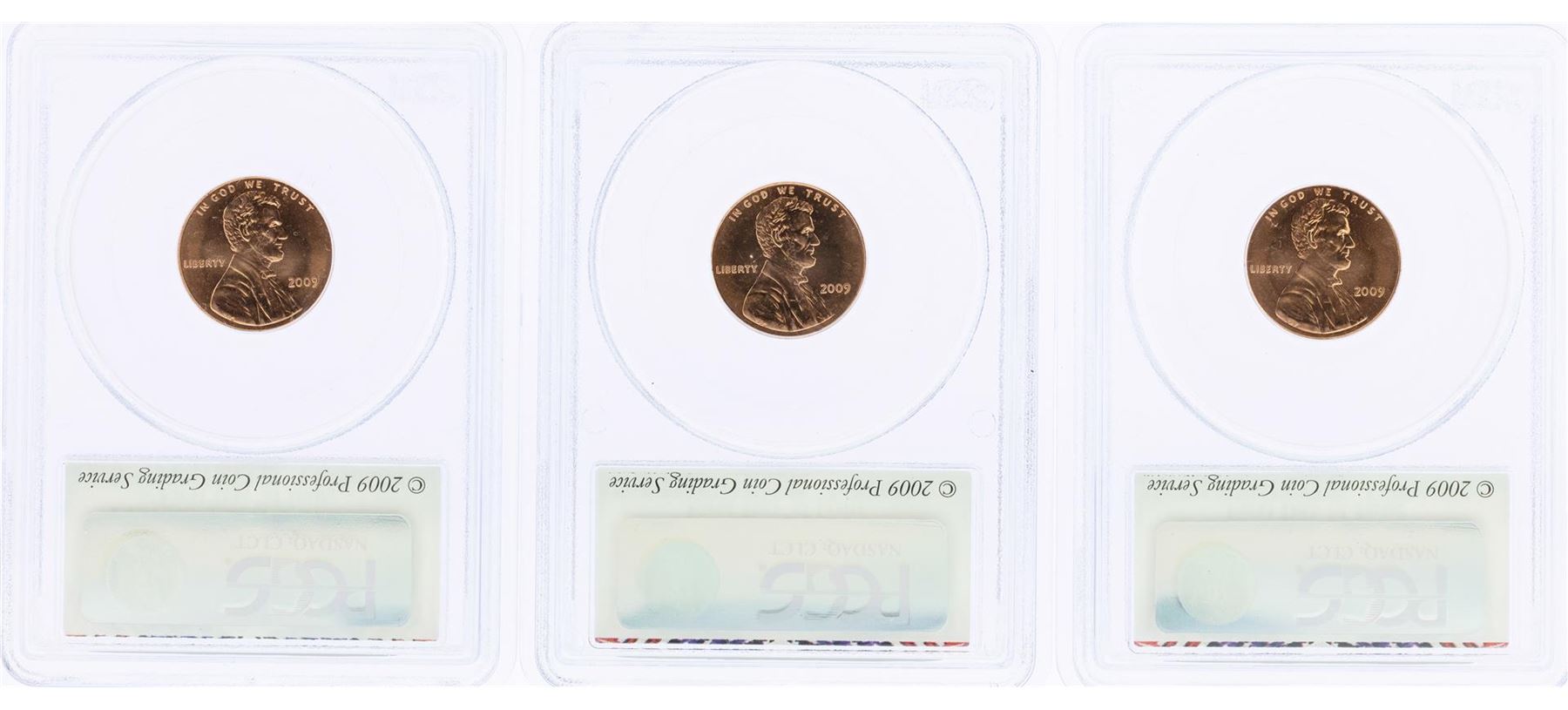 Lot of (3) 2009 Bicentennial Lincoln Cent Coins PCGS MS66RD First Day of Issue