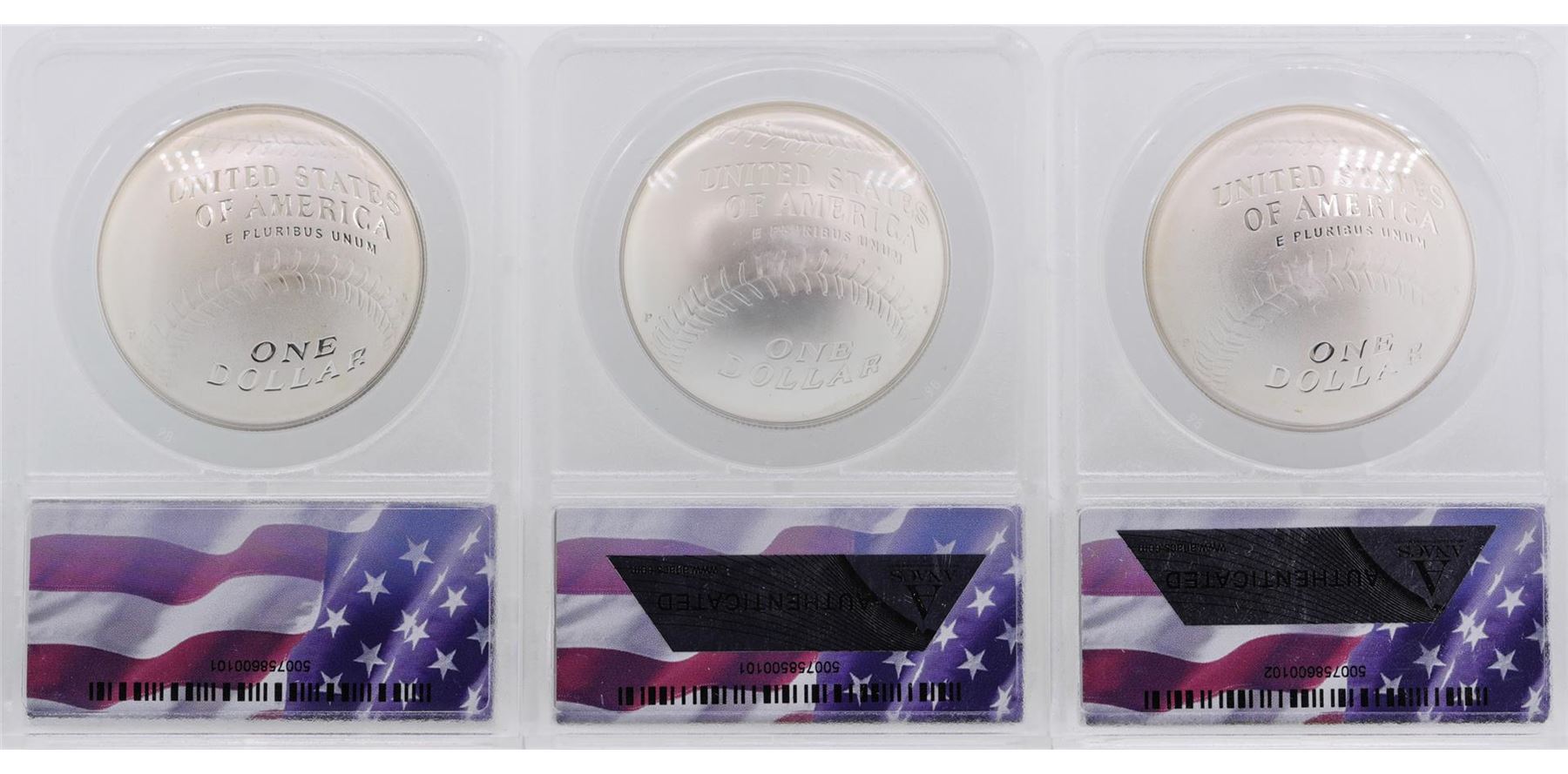 One Lot of (3) 2014-P $1 National Baseball Hall of Fame Coin ANCAS Certified MS70/PR70 DCAM.