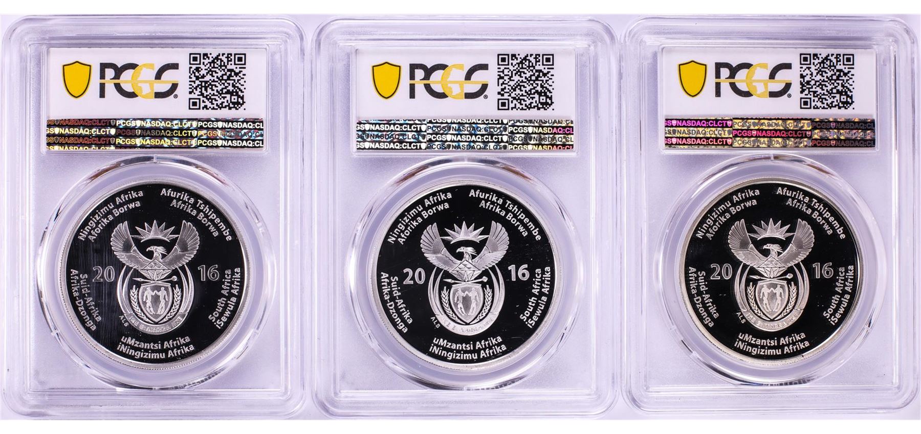 Lot of (3) 2016 Proof South Africa 2 Rand Cheetah Silver Coins PCGS PR70DCAM