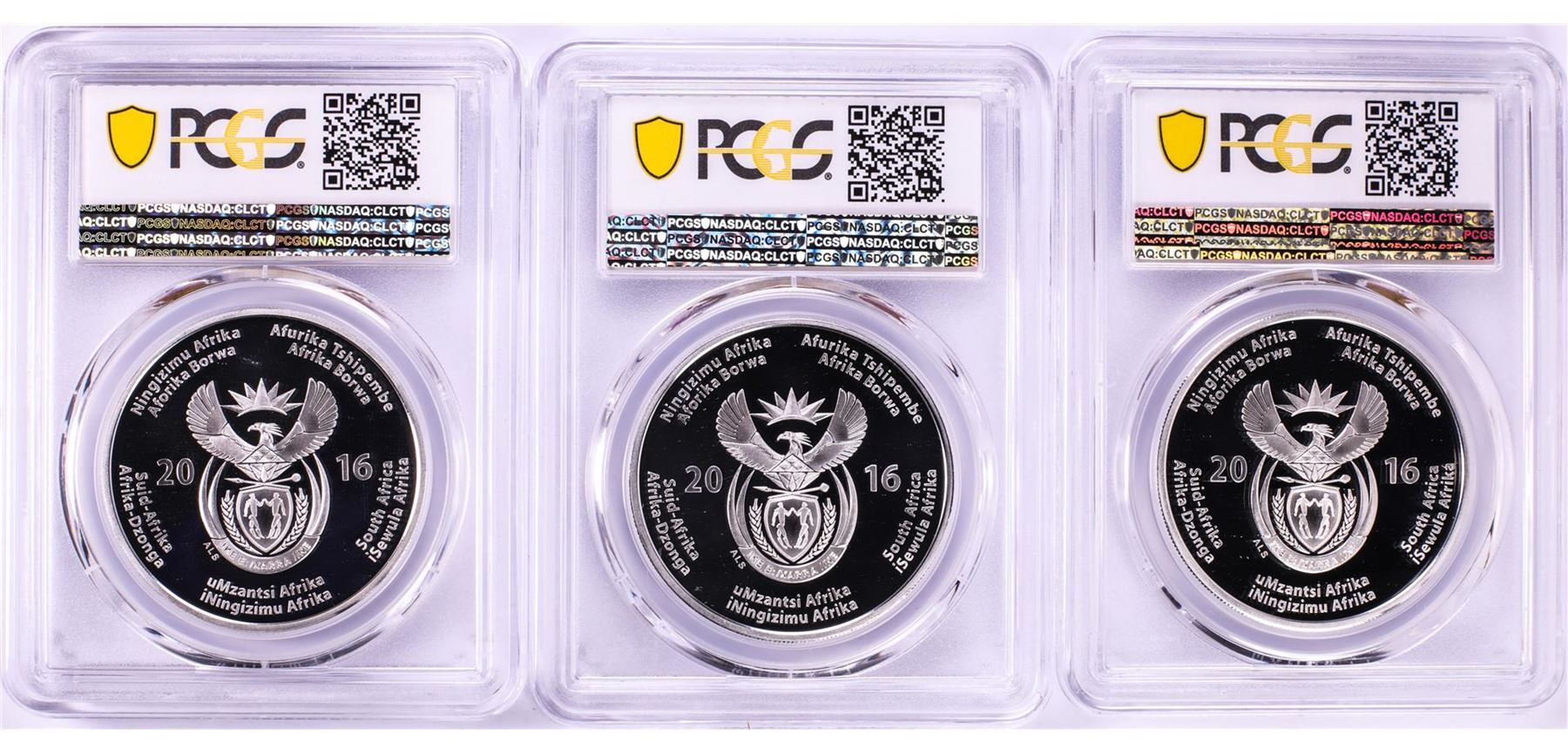 Lot of (3) 2016 Proof South Africa 2 Rand Cheetah Silver Coins PCGS PR70DCAM