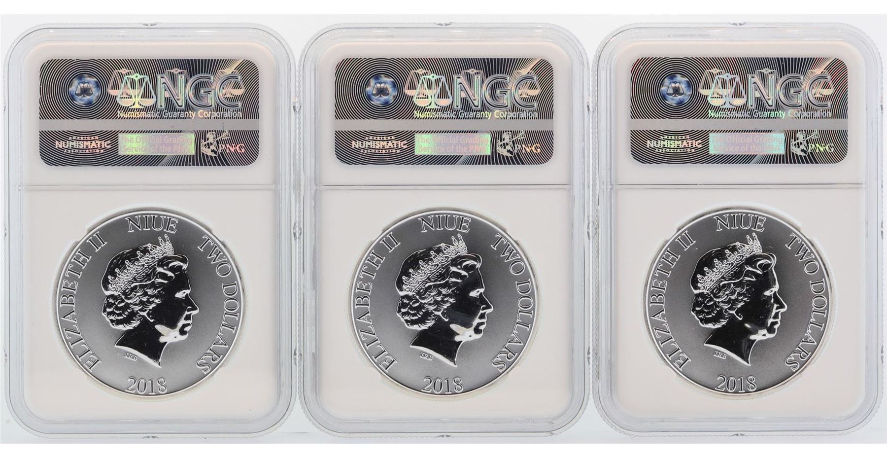 One Lot of (3) 2018 Niue $2 Star Wars Stormtrooper Silver Coins NGC MS69 Early Releases. NGC Certified.