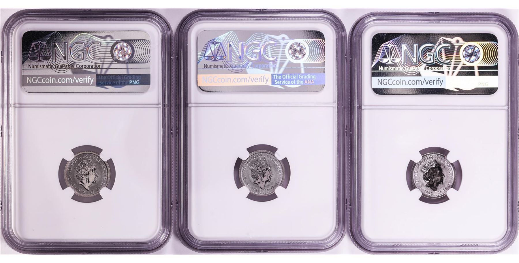 Lot of (3) 2021 Great Britain 10 Pounds Britannia 1/10oz Platinum Coins NGC MS69