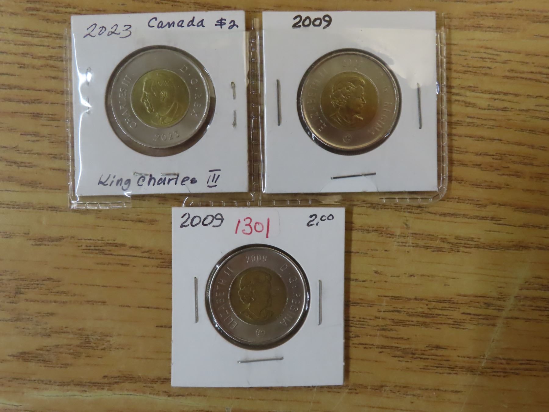 Lot of 3 2x2009, 2023 king charles canadian toonies