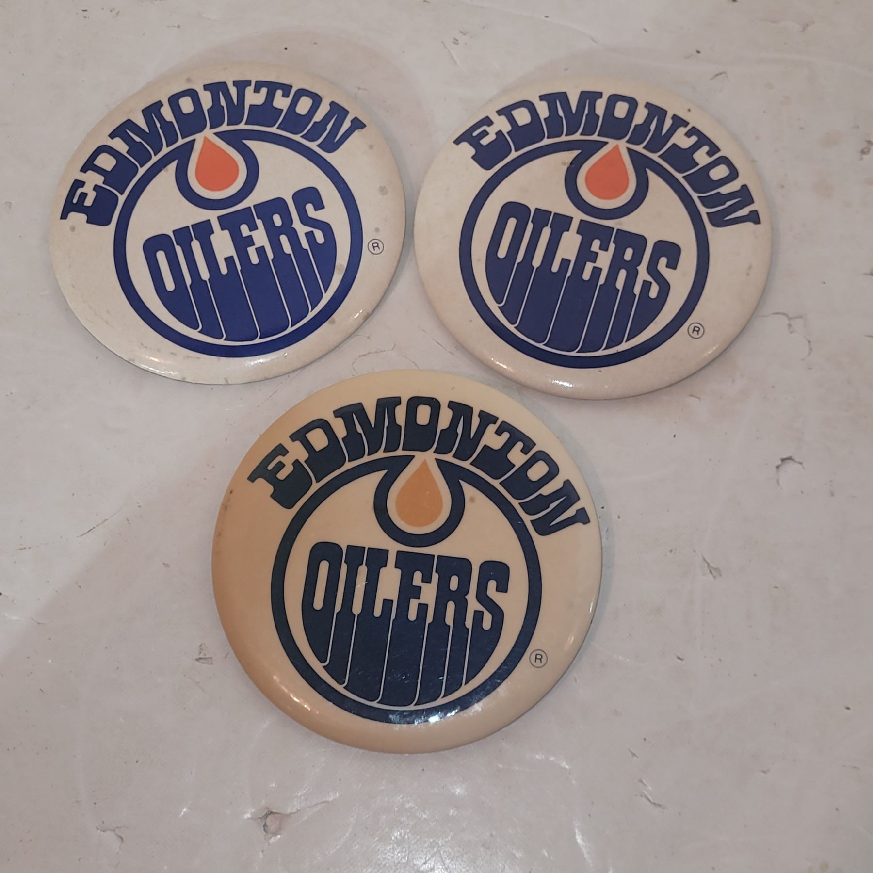 Lot of 3 3.5 Inch 1970s WHA Edmonton Oilers Pinback Buttons
